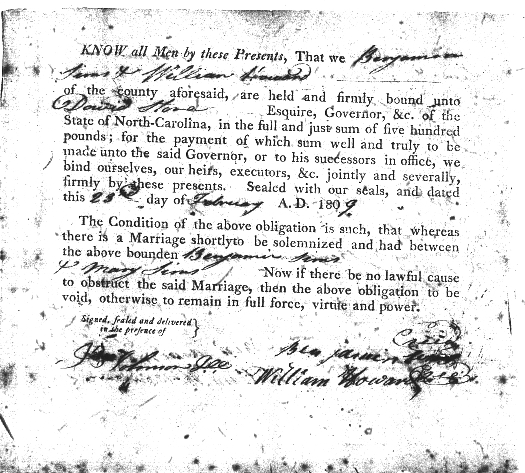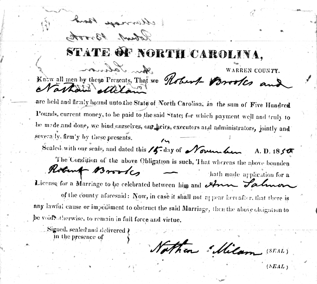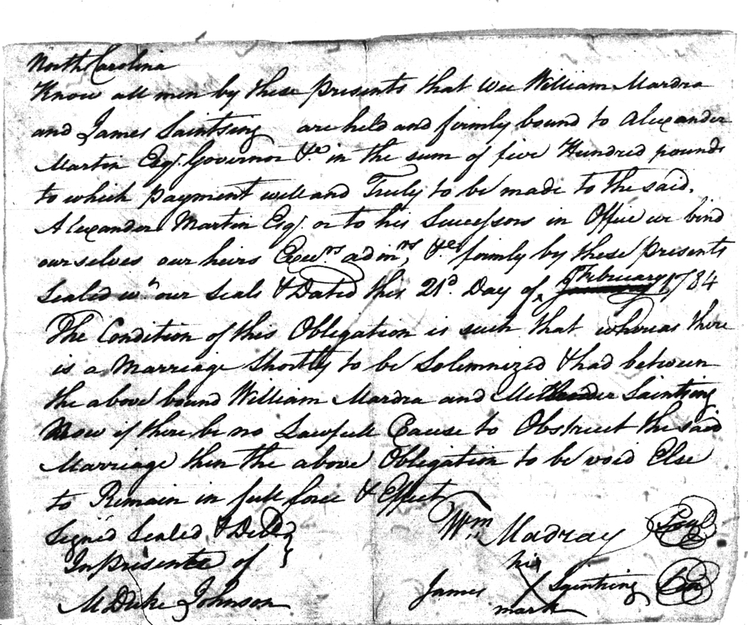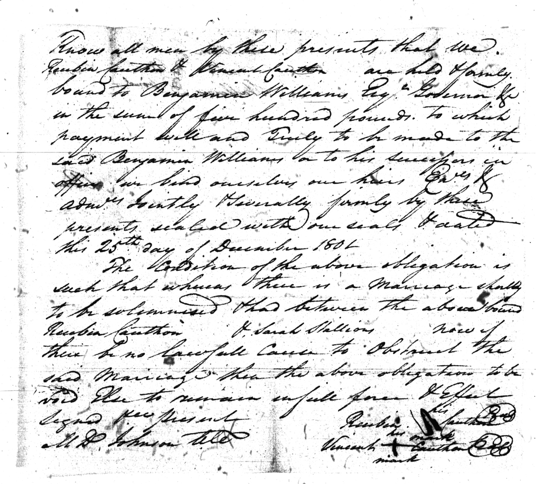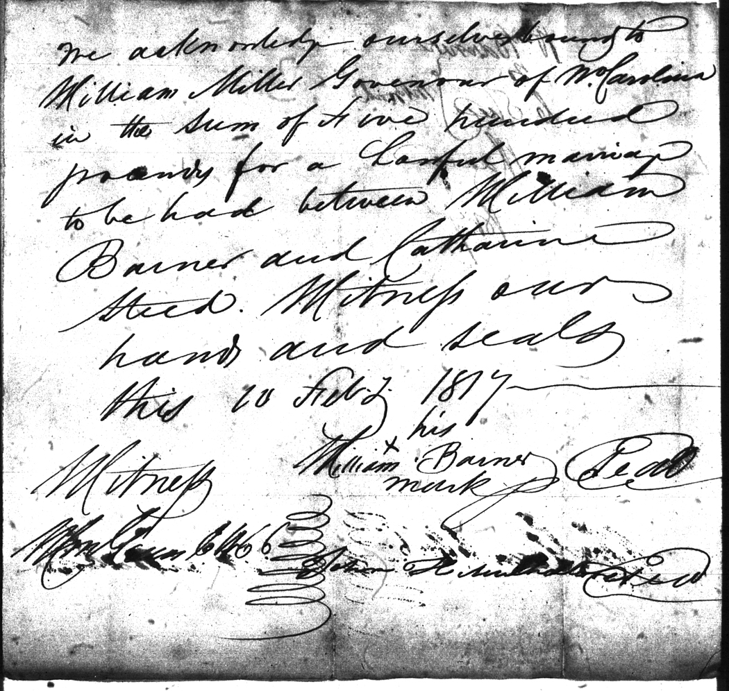 We should all thank Ginger Christmas-Beattie for all the work that has gone into getting the marriage bond images online. Not only has she done them once but twice after she found a way to tease the process to get a clearer image from the old microfilm. This is something I could not have done in years but Ginger has always been able to do more in less time than anyone I know. |