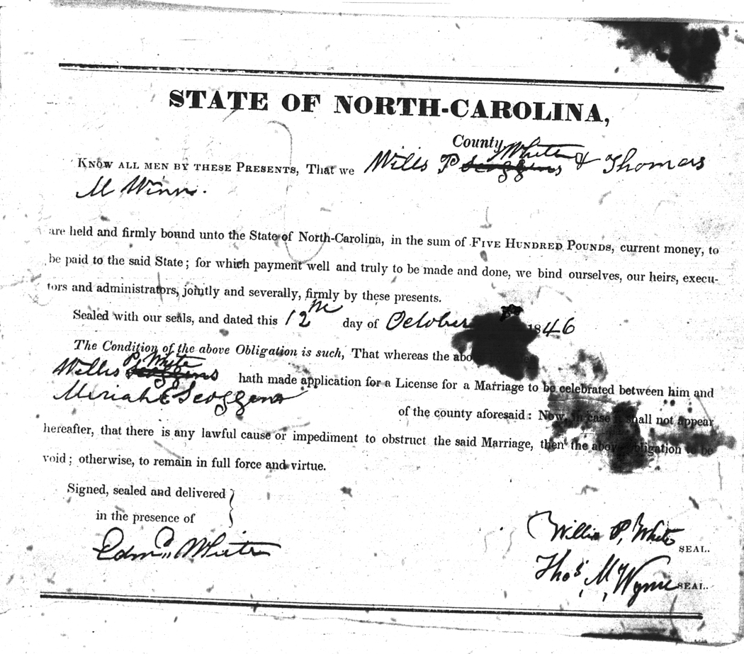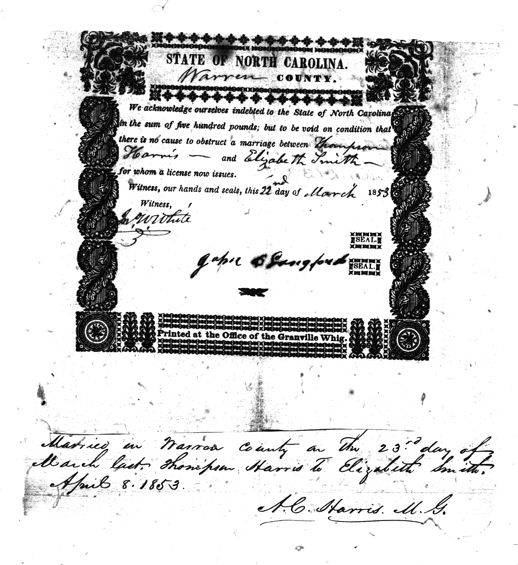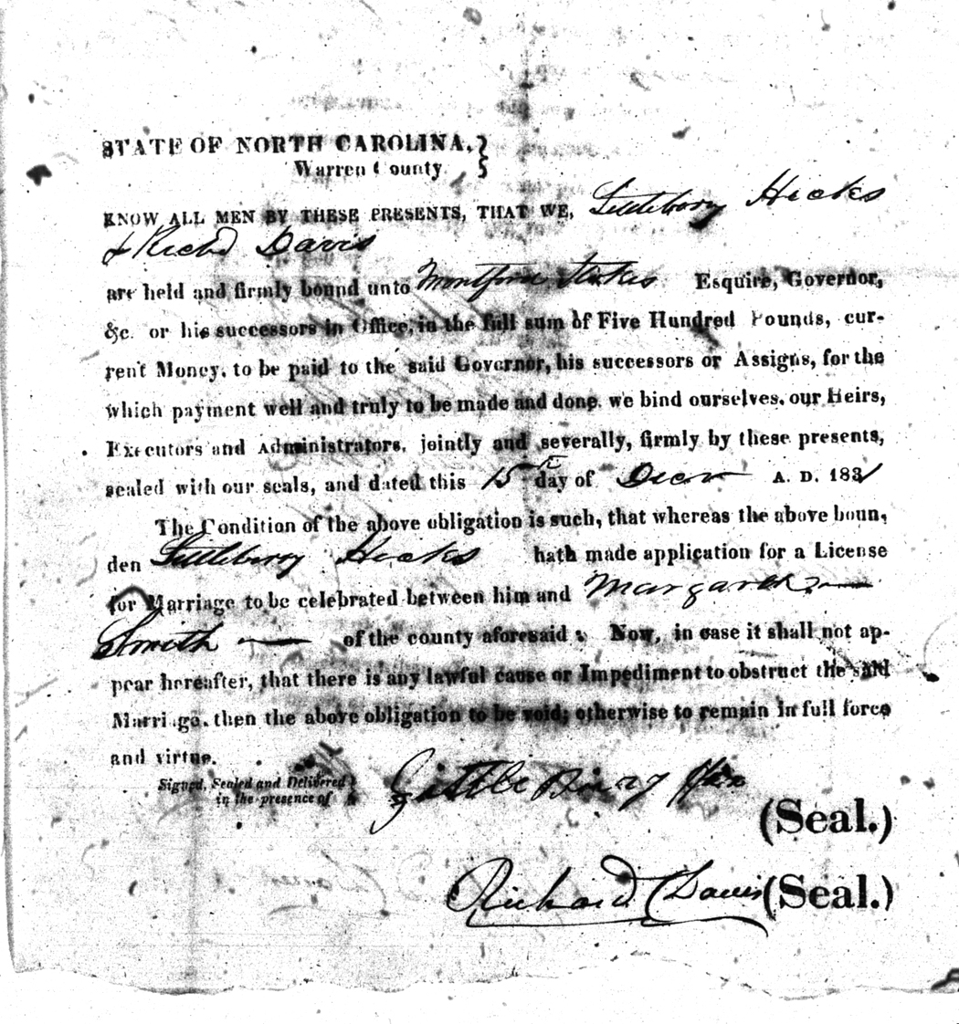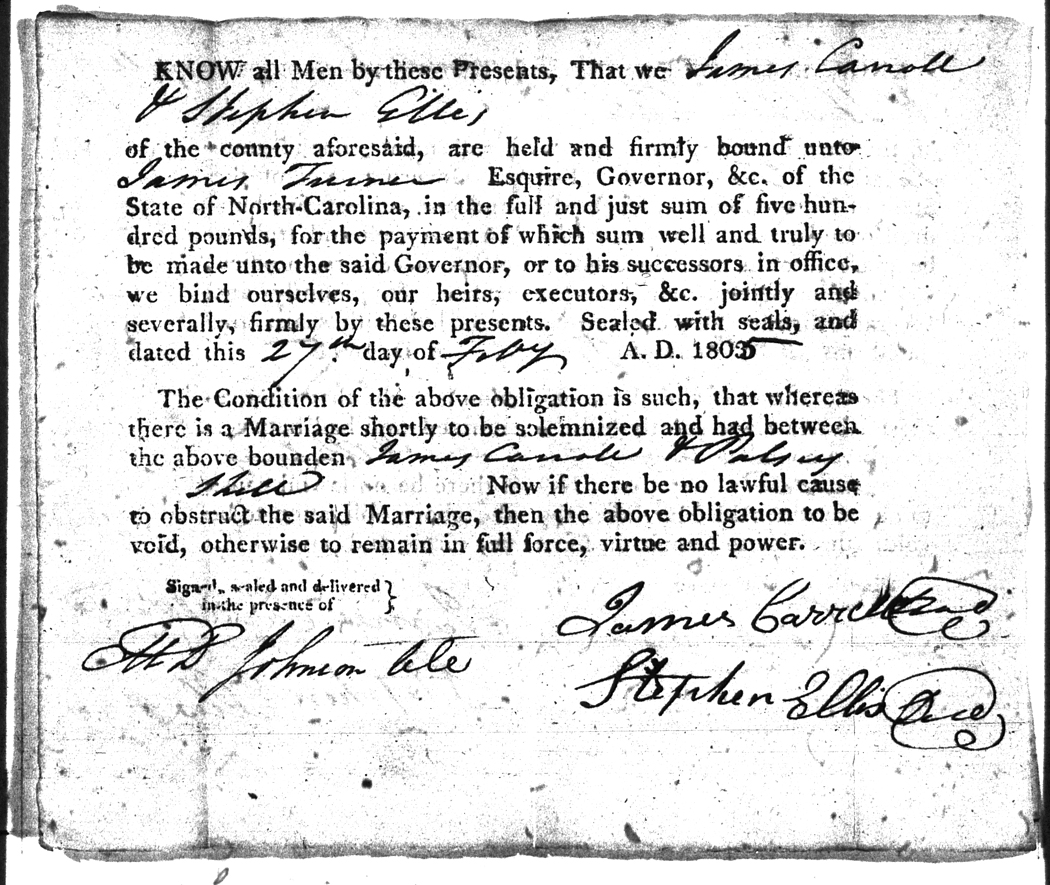 We should all thank Ginger Christmas-Beattie for all the work that has gone into getting the marriage bond images online. Not only has she done them once but twice after she found a way to tease the process to get a clearer image from the old microfilm. This is something I could not have done in years but Ginger has always been able to do more in less time than anyone I know. |