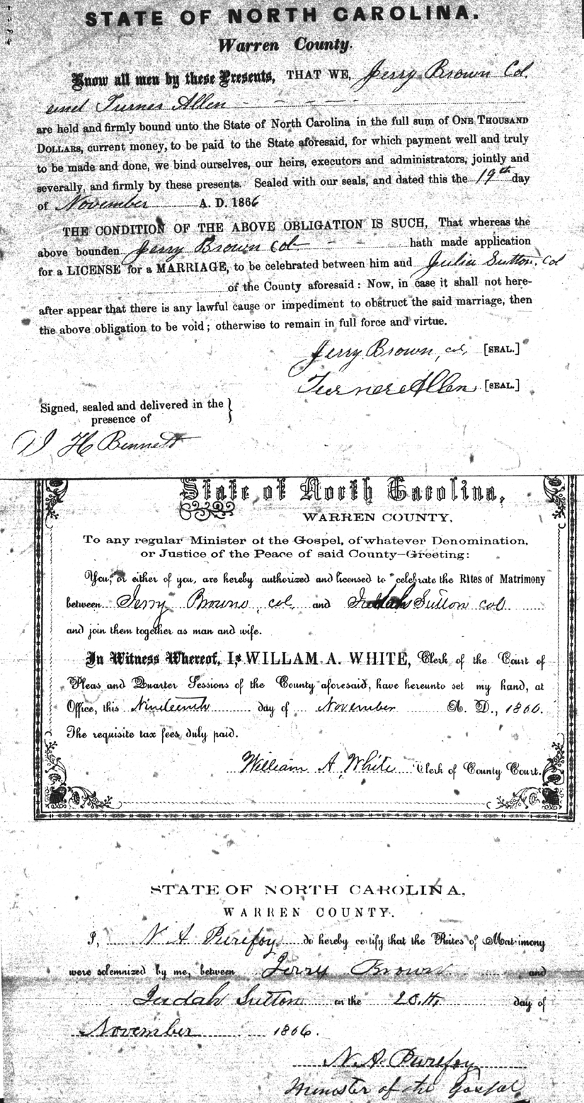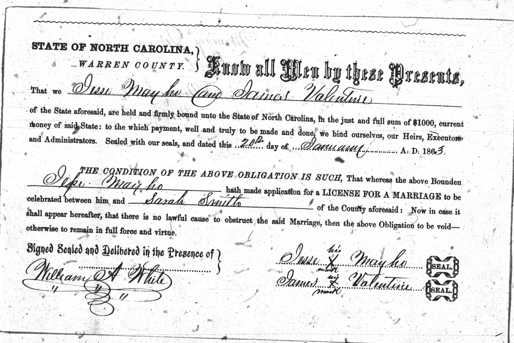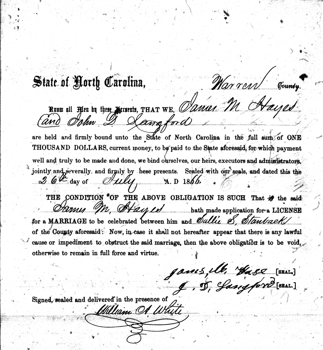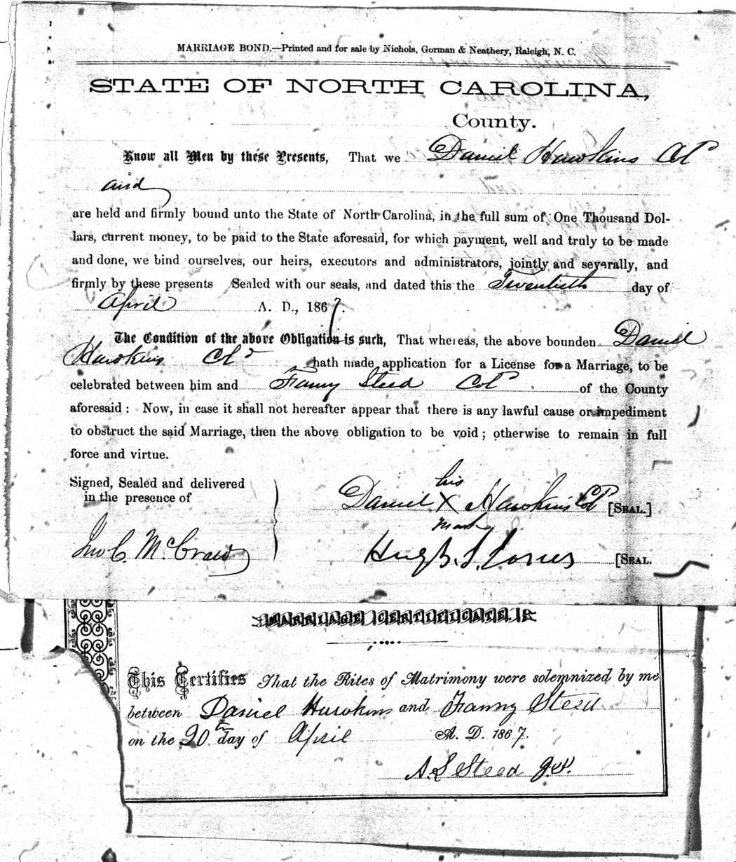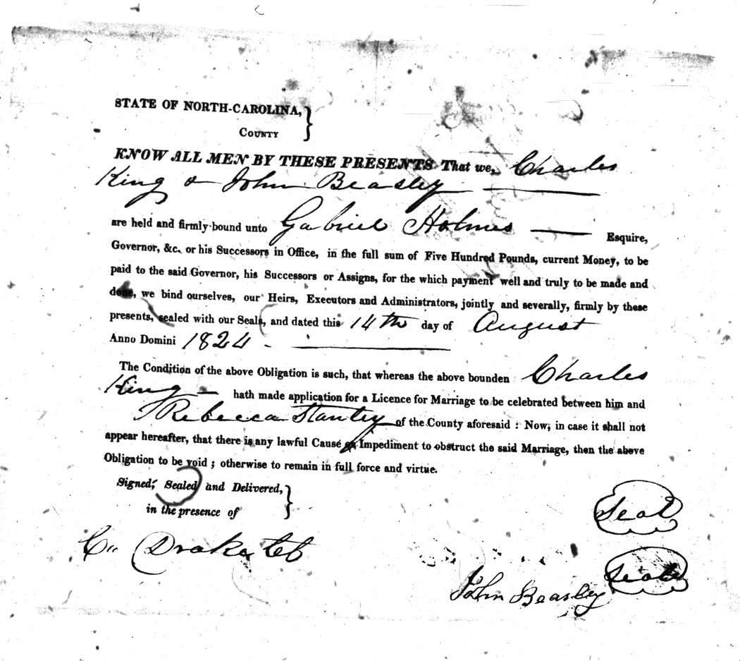We should all thank Ginger Christmas-Beattie for all the work that has gone into getting the marriage bond images online. Not only has she done them once but twice after she found a way to tease the process to get a clearer image from the old microfilm. This is something I could not have done in years but Ginger has always been able to do more in less time than anyone I know. |