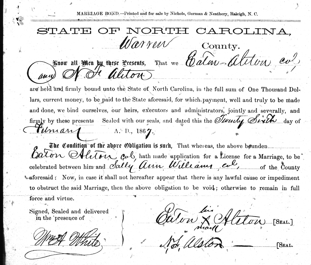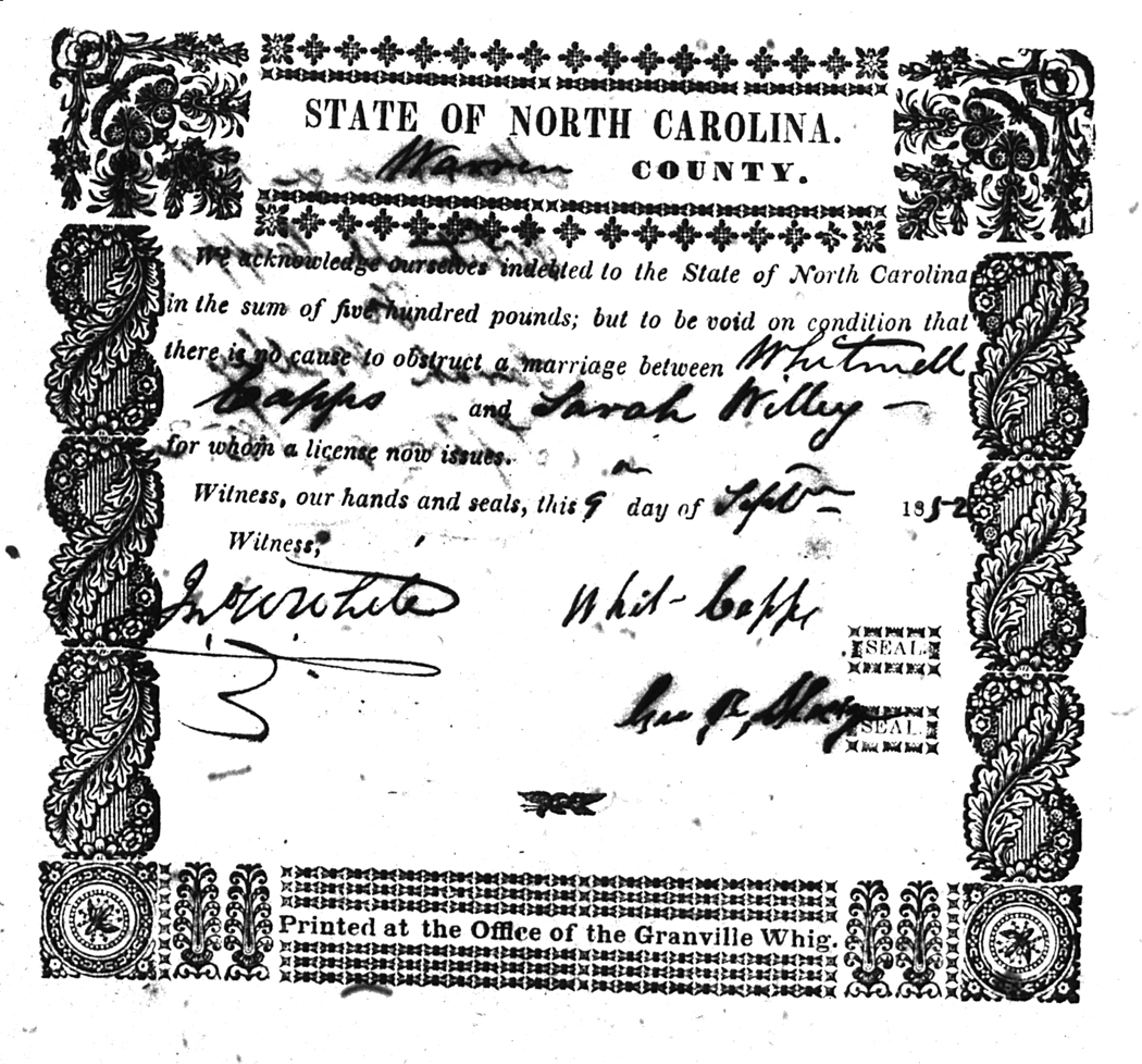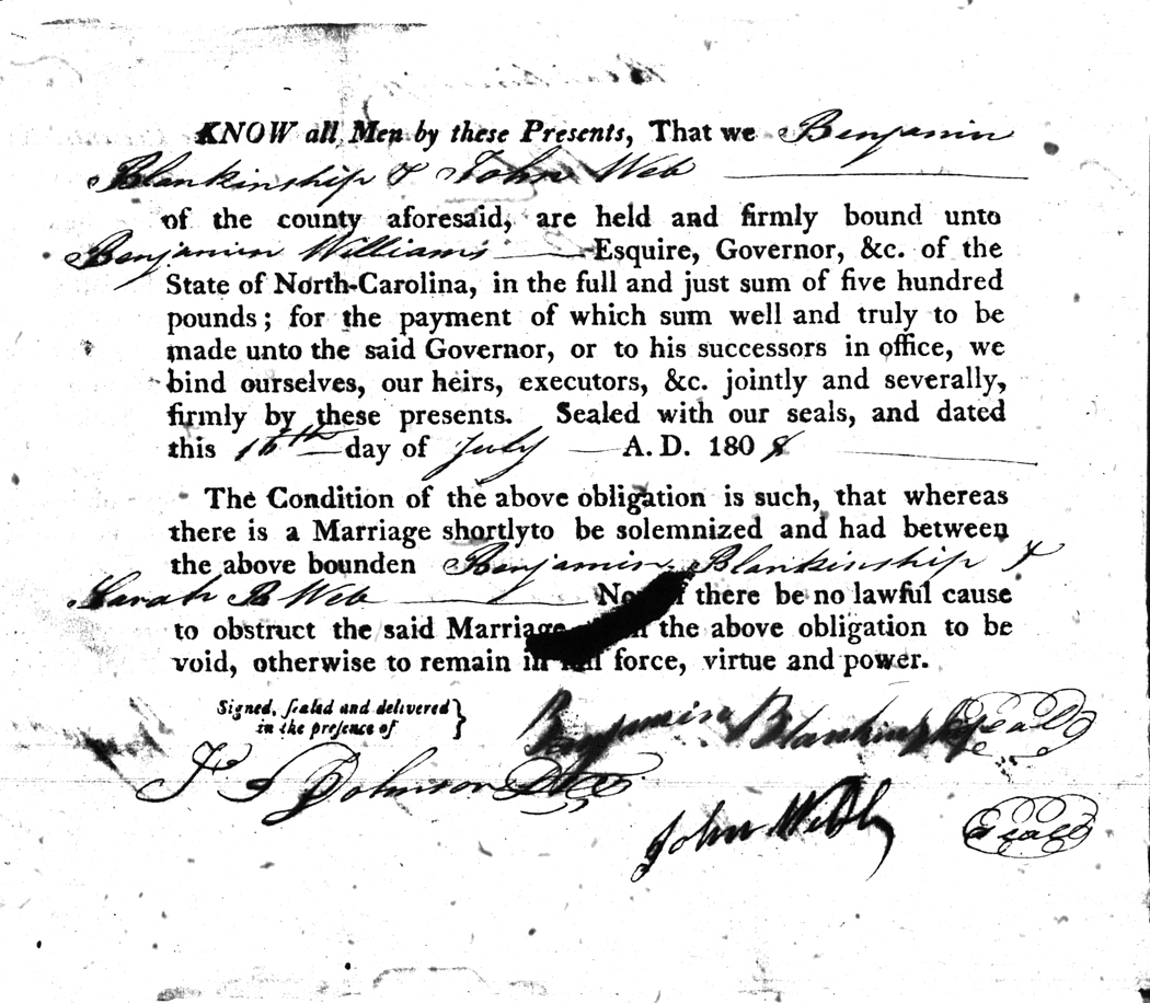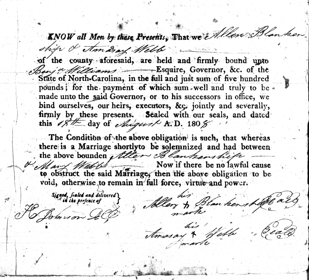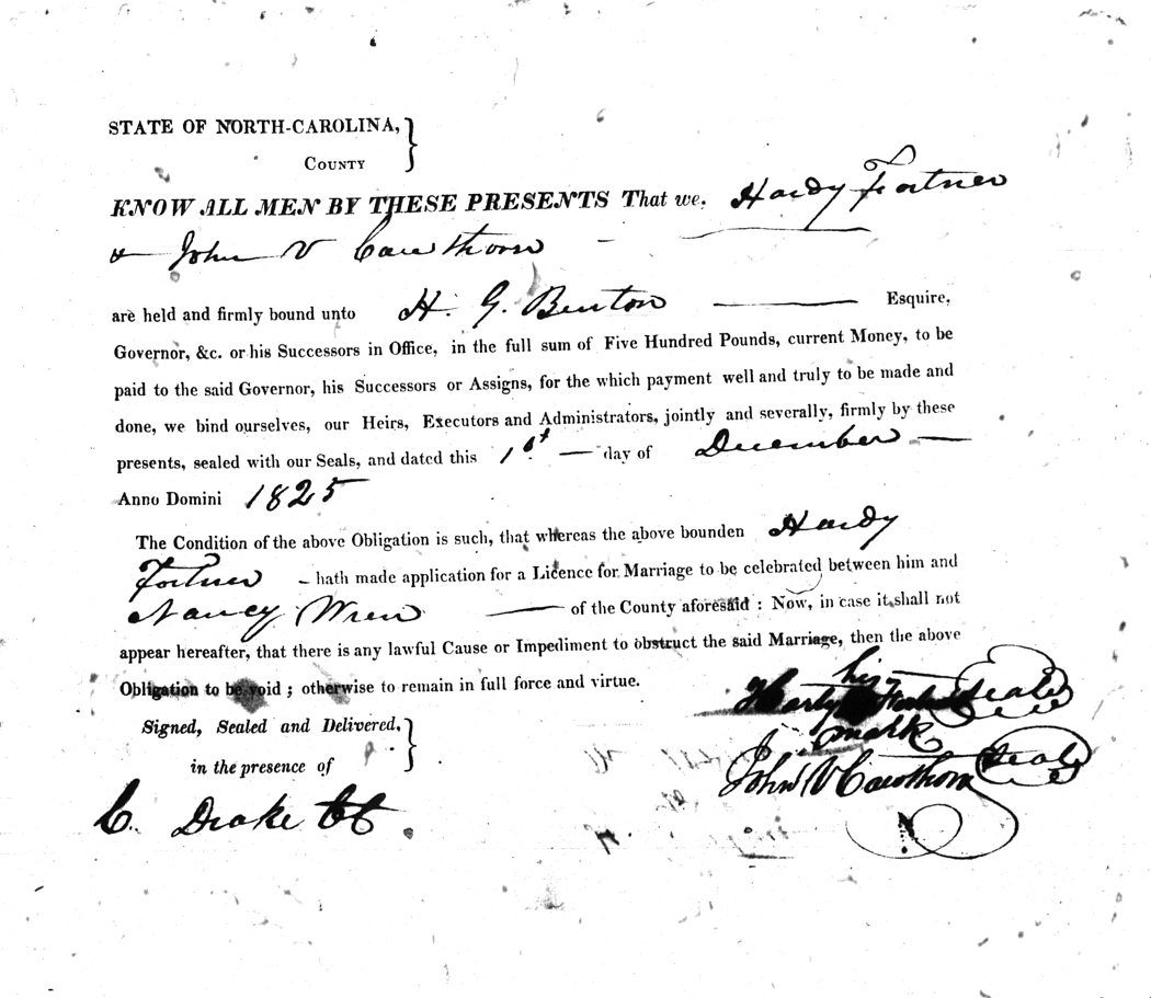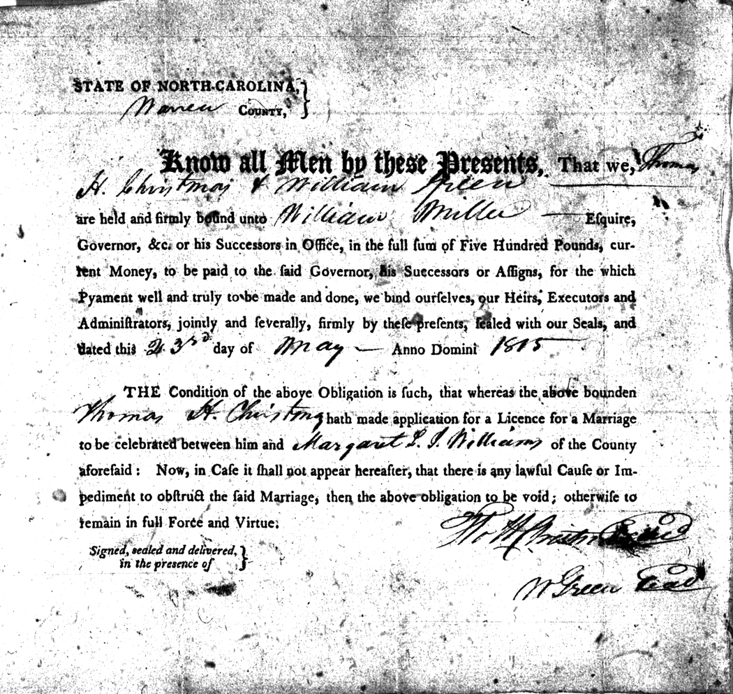 We should all thank Ginger Christmas-Beattie for all the work that has gone into getting the marriage bond images online. Not only has she done them once but twice after she found a way to tease the process to get a clearer image from the old microfilm. This is something I could not have done in years but Ginger has always been able to do more in less time than anyone I know. |