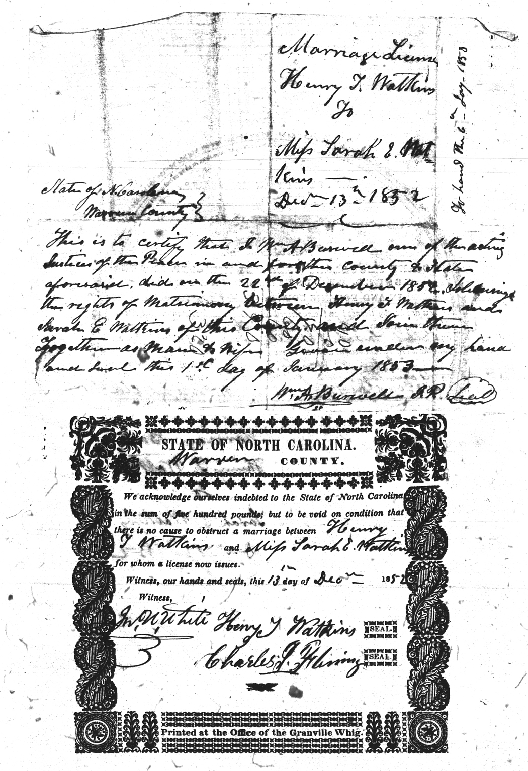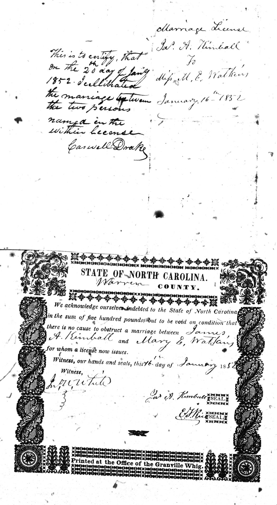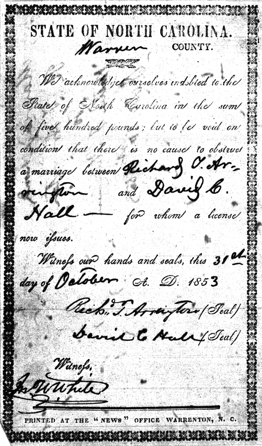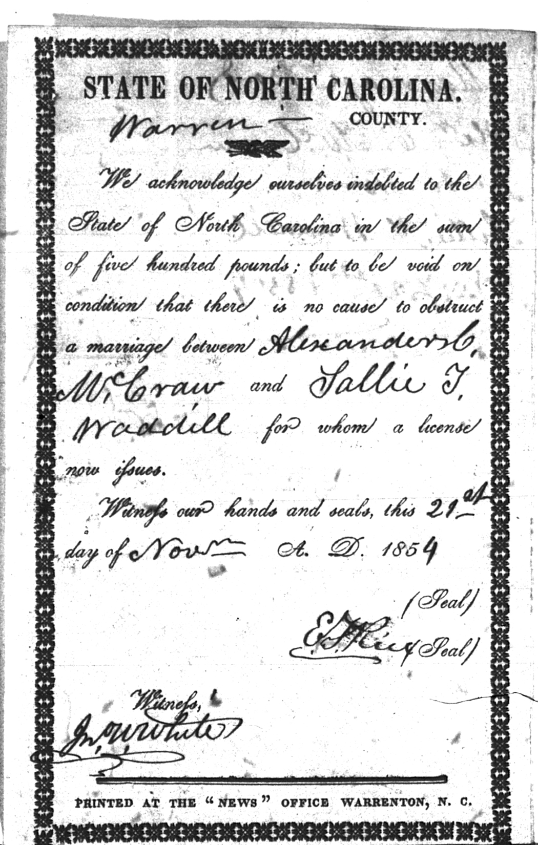 Warren County Marriage Bond Images 1779-1868 |
