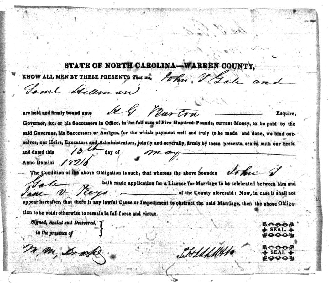 Gale John T Keys Jane V 13 May 1826   Samuel Hillman White