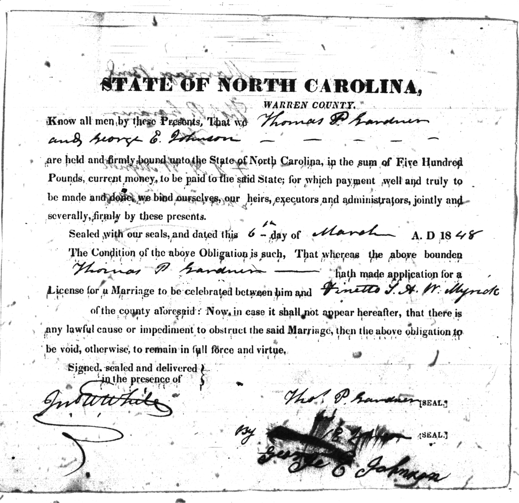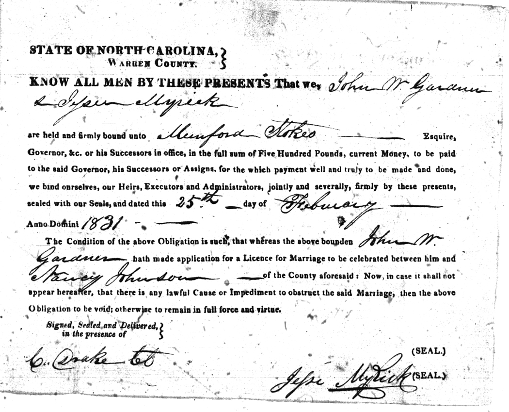 Gardner John W Johnson Nancy 25 Feb 1831   Jesse Myrick White