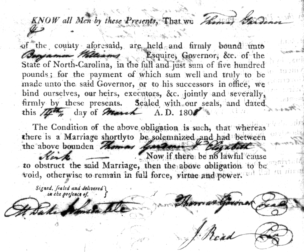 Gardner Thomas Kirk Elizabeth 14 Mar 1808   J. Read White