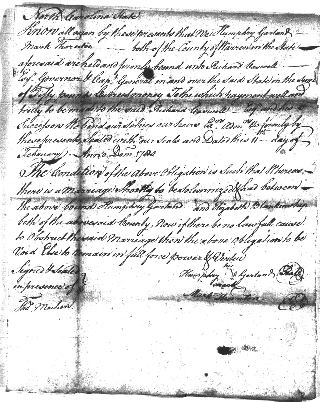 Garland Humphry Blankenship Elizabeth 11 Feb 1780   Mark Thornton White