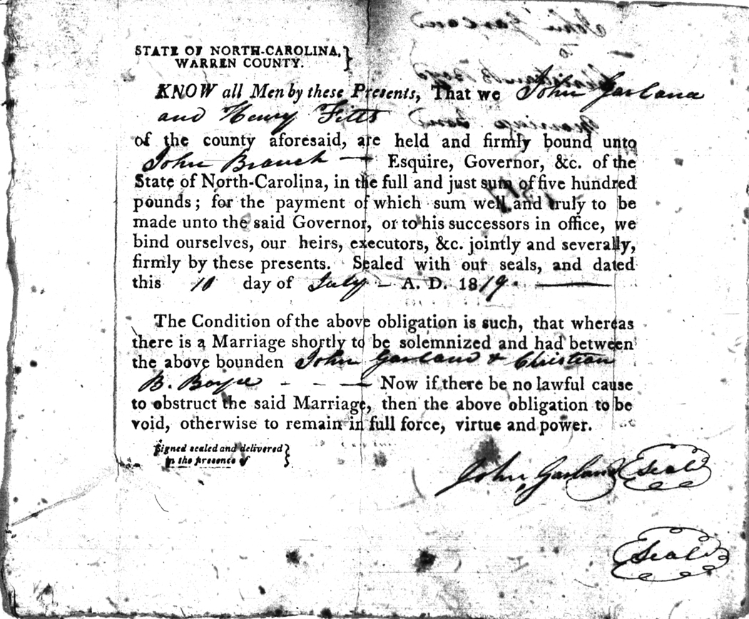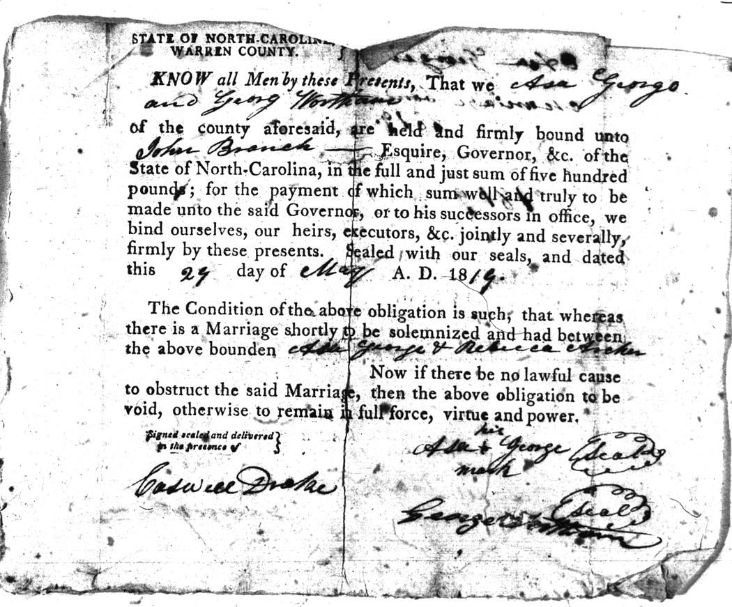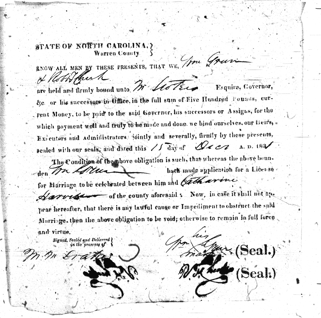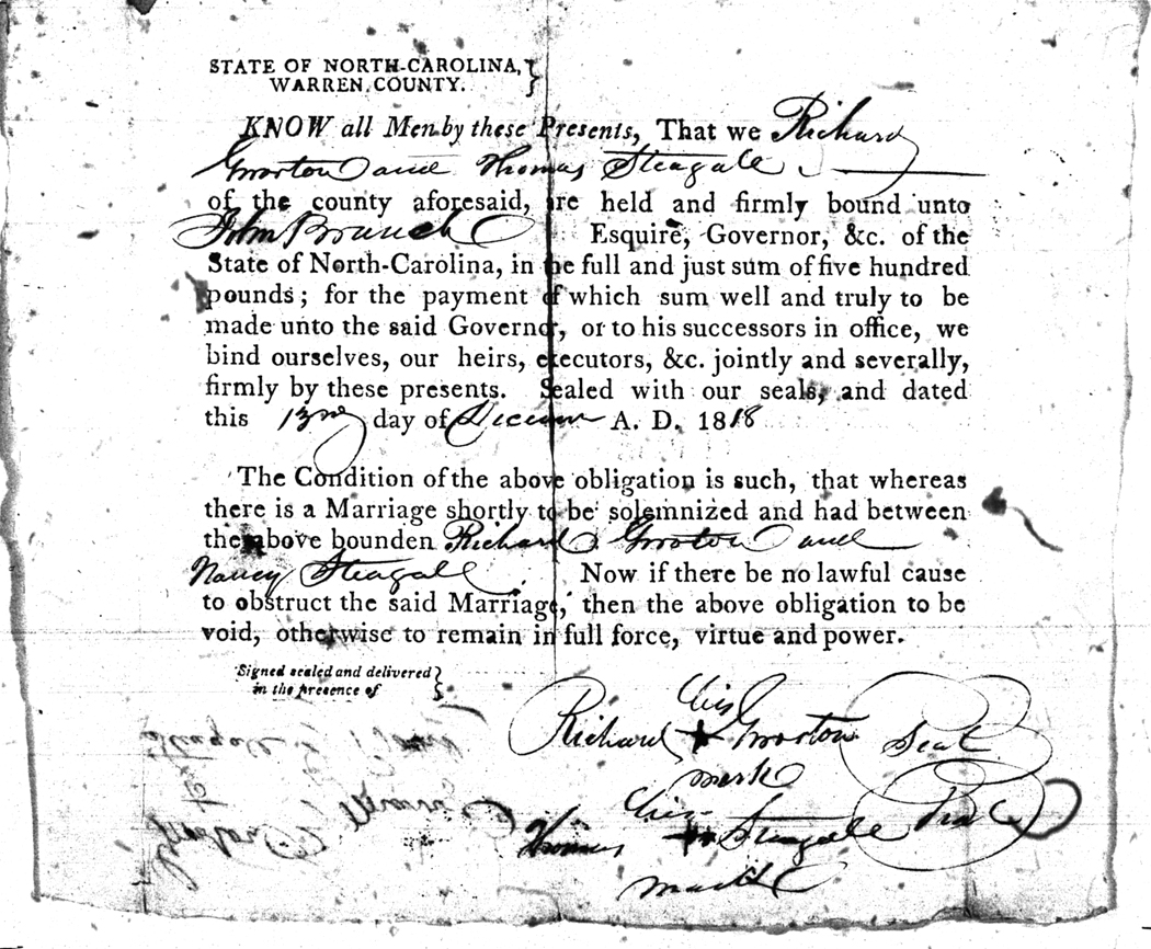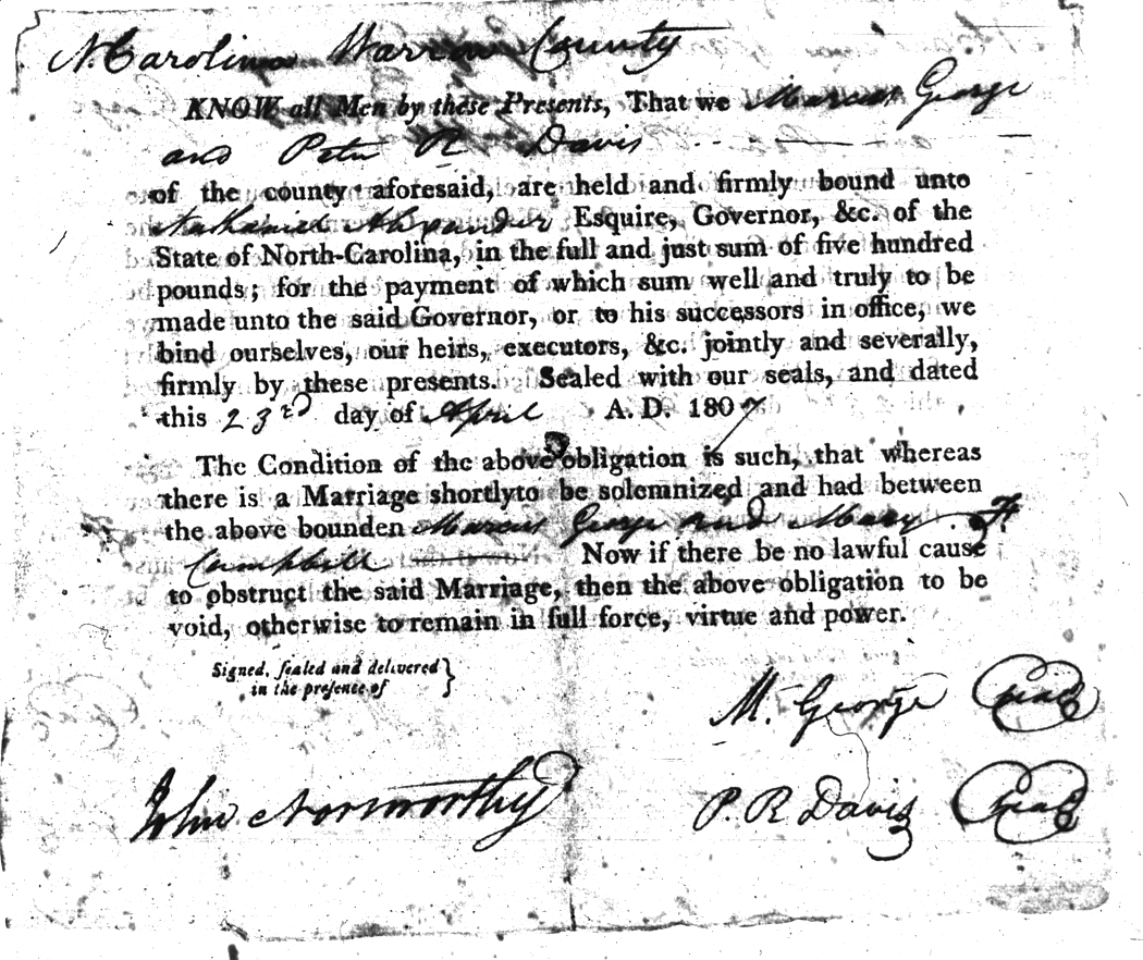 We should all  thank Ginger Christmas-Beattie for all the work that has gone into getting the marriage bond images online. Not only has she done them once but twice after  she found a way to tease the process to get a clearer image from the old microfilm.  This is something I could not have done in years but Ginger has always been able to do more in less time than anyone I know.