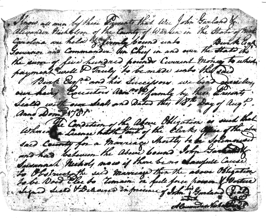 Garland John Nichols Susannah 08 Aug 1781   Alexander Nicholson White