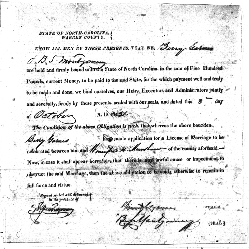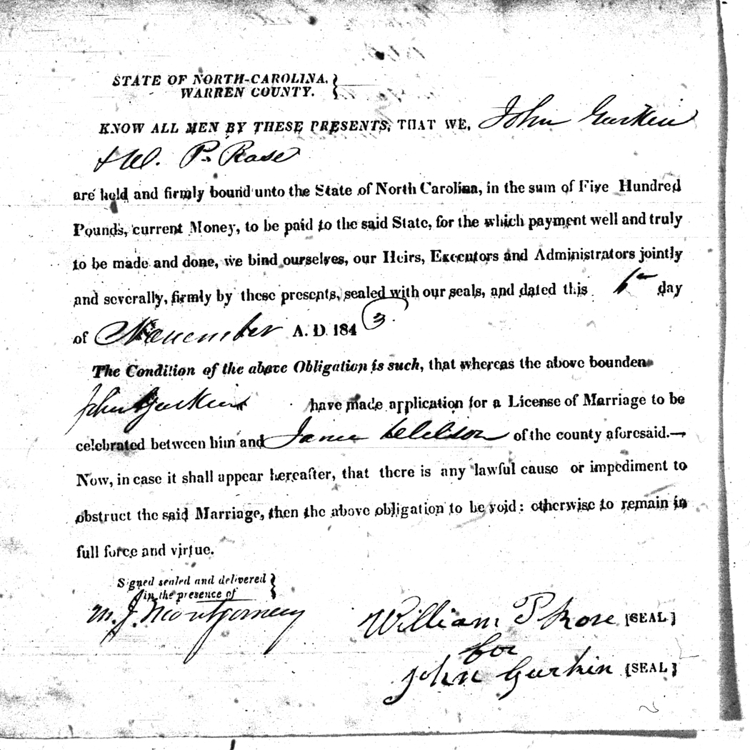 Gurkin John Wilson Janie 06 Nov 1843   William P. Rose White