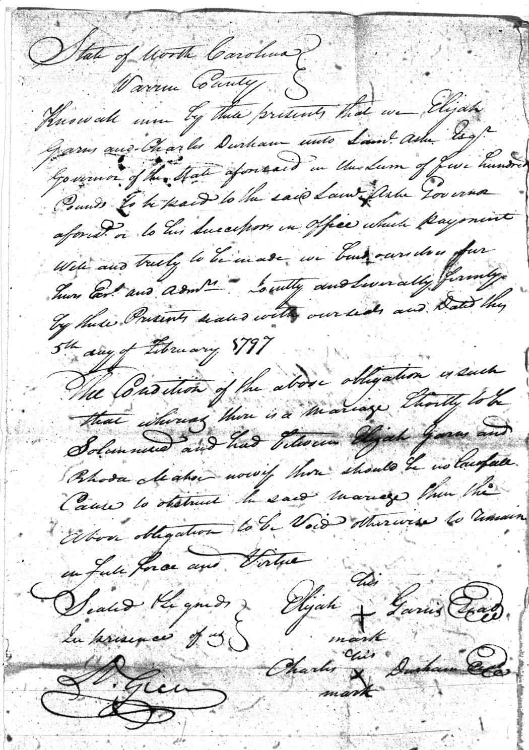 Garns Elijah Mayhoe Rhoda 05 Feb 1797   Charles Durham Colored