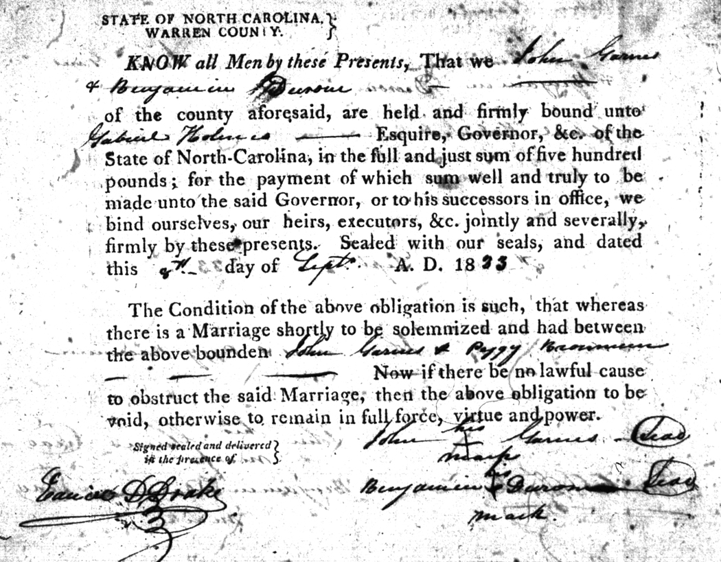 Garnes John Brannum Peggy 08 Sep 1823   Benjamin Durous Colored