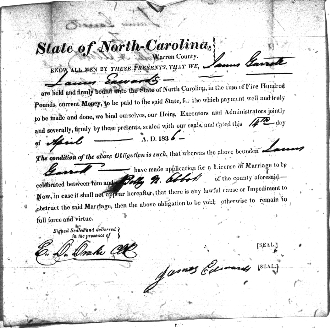 Garrott James Abbott Polly N 14 Apr 1836   James Edward White