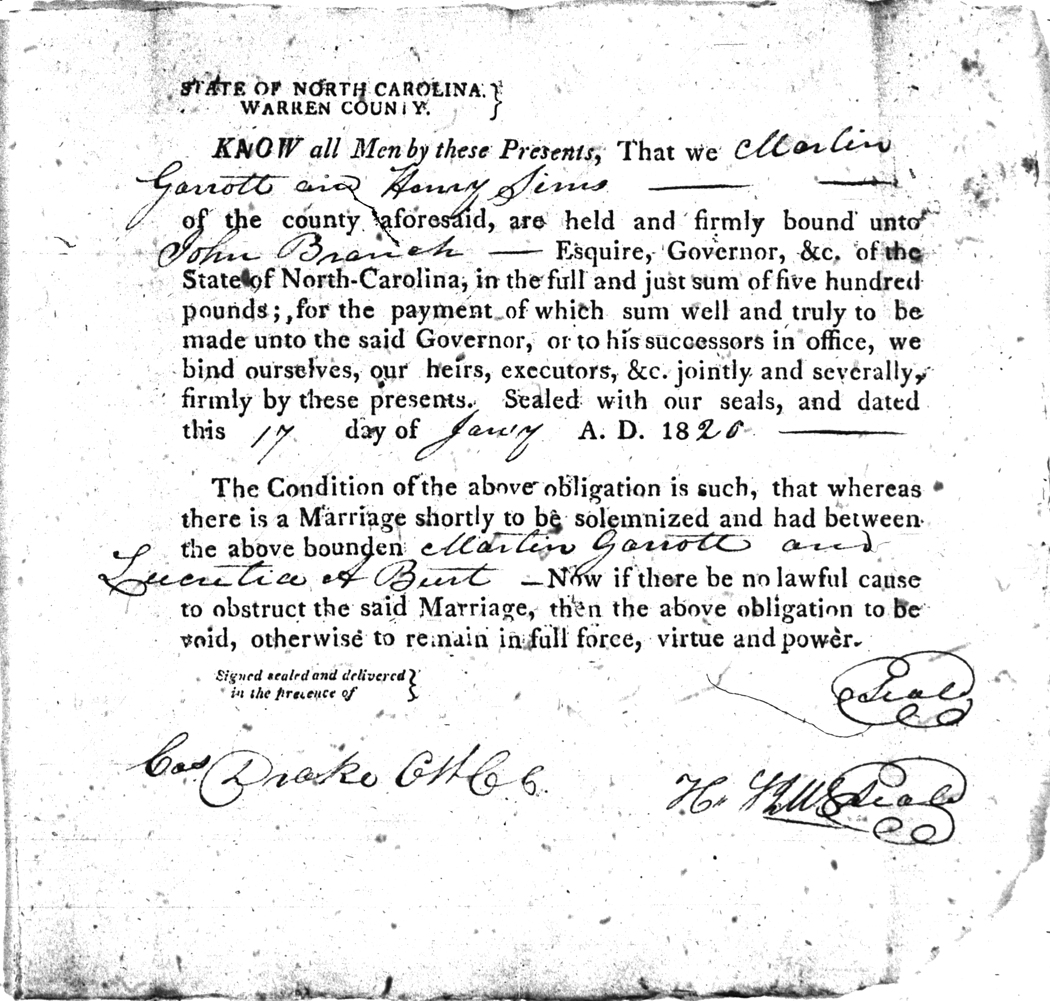 Garrott Martin Burt Lucretia A. 17 Jan 1820   Henry Sims White