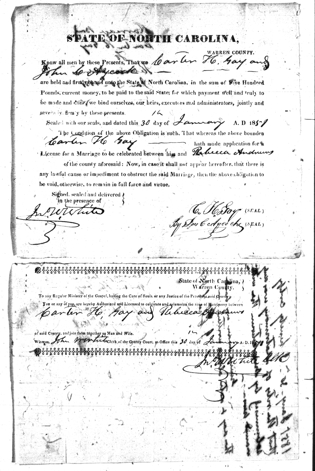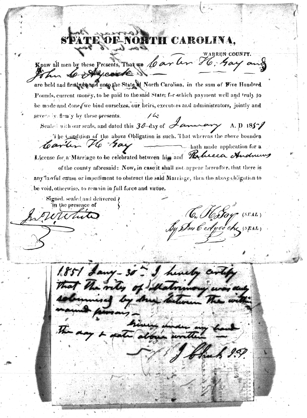 Gay Carter H Andrews Rebecca 30 Jan 1851 30 Jan 1851 John C. Aycock White