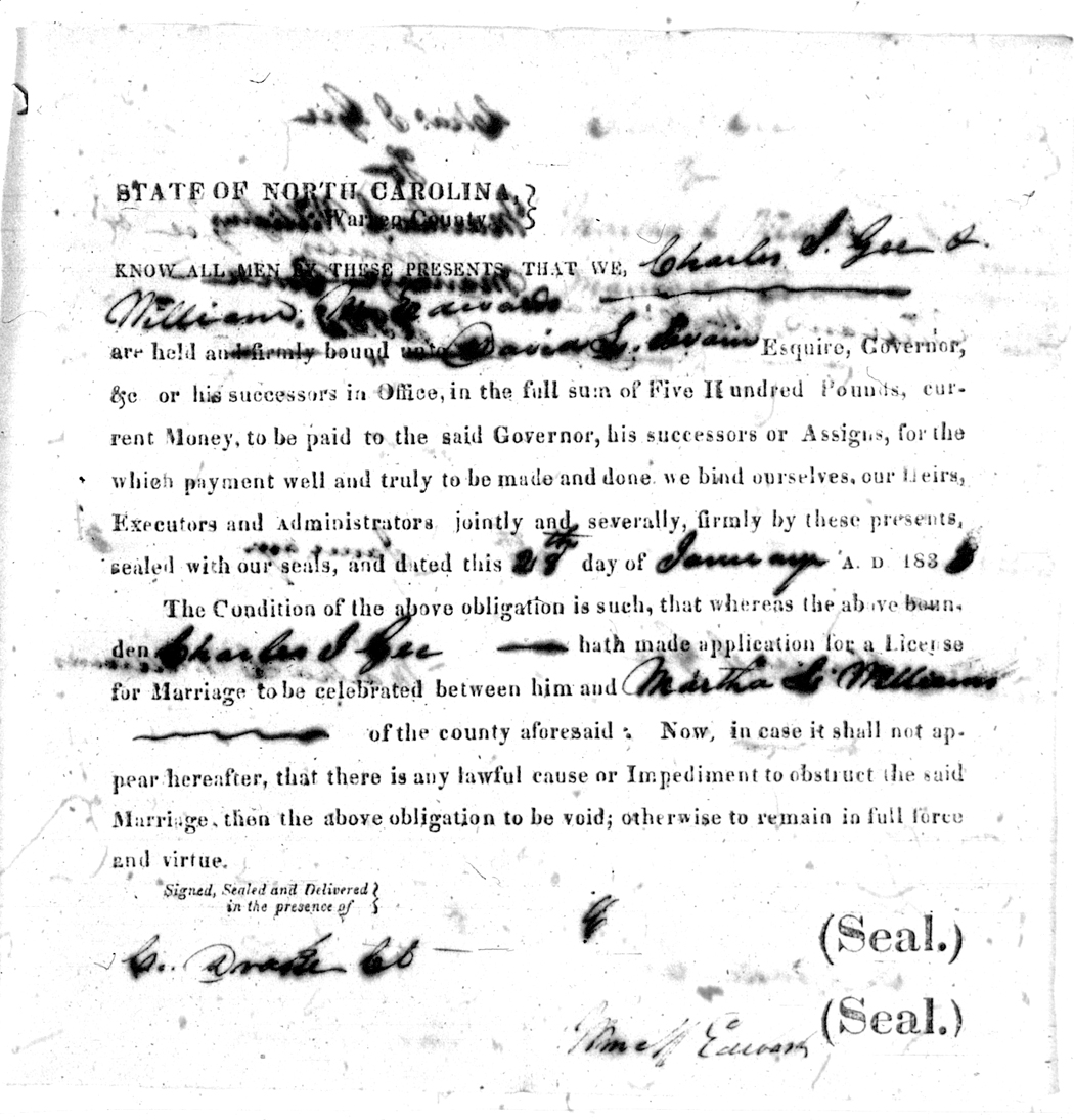 Gee Charles J Williams Martha L 28 Jan 1833   William Edwards White