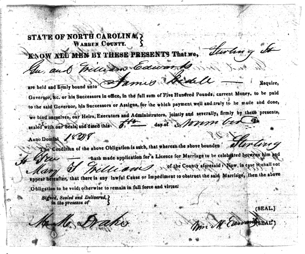 Gee Sterling H Williams Mary T 06 Nov 1828   William Edwards White