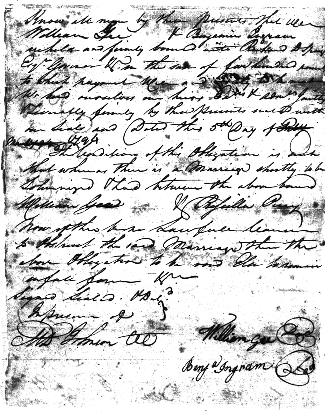 Gee William Perry Prescilla 05 Mar 1794 05 Mar 1794 Benjamin Ingram White