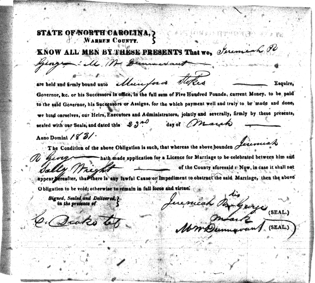George Jeremiah R Wright Sally 23 Mar 1831   M. W. Dunnavant White