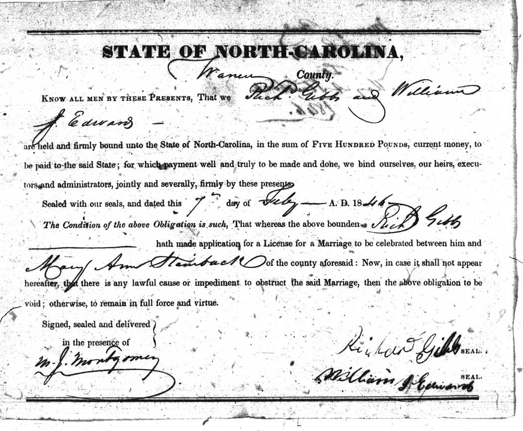 Gibbs Richard Stainback Mary Ann 07 Feb 1846   William J. Edwards White