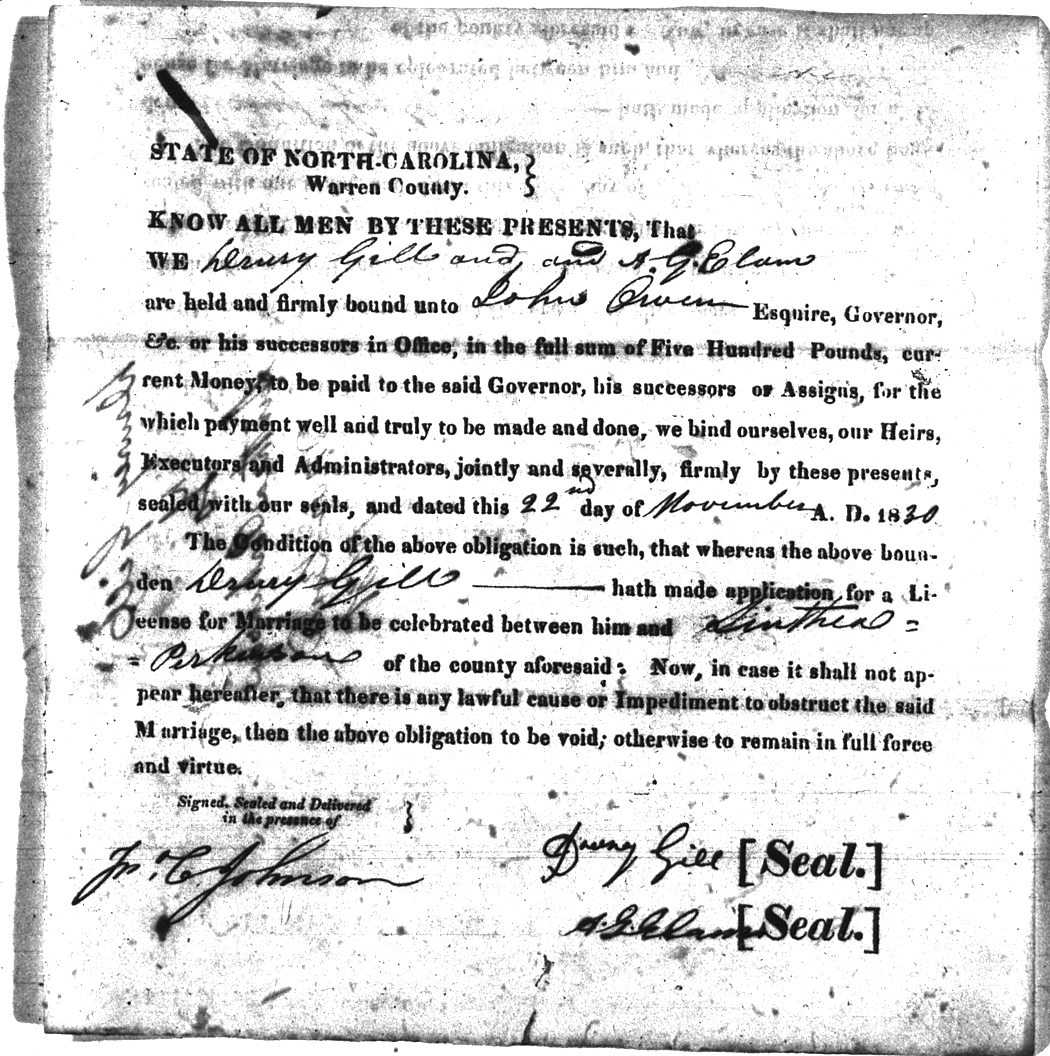 Gill Drury Perkinson Sinthea 22 Nov 1830   A. G. Elam White