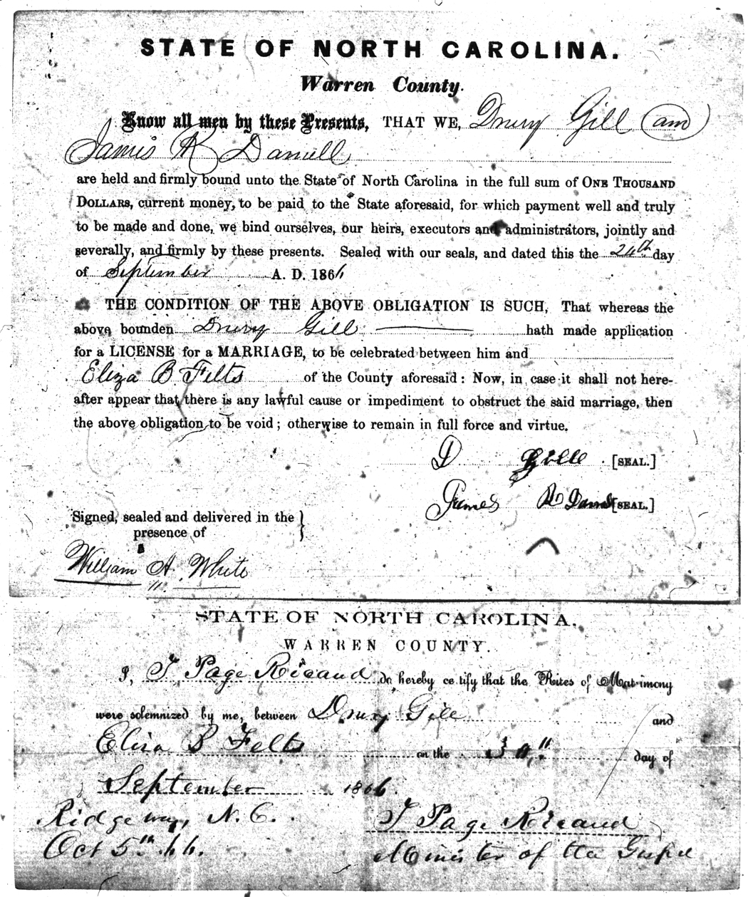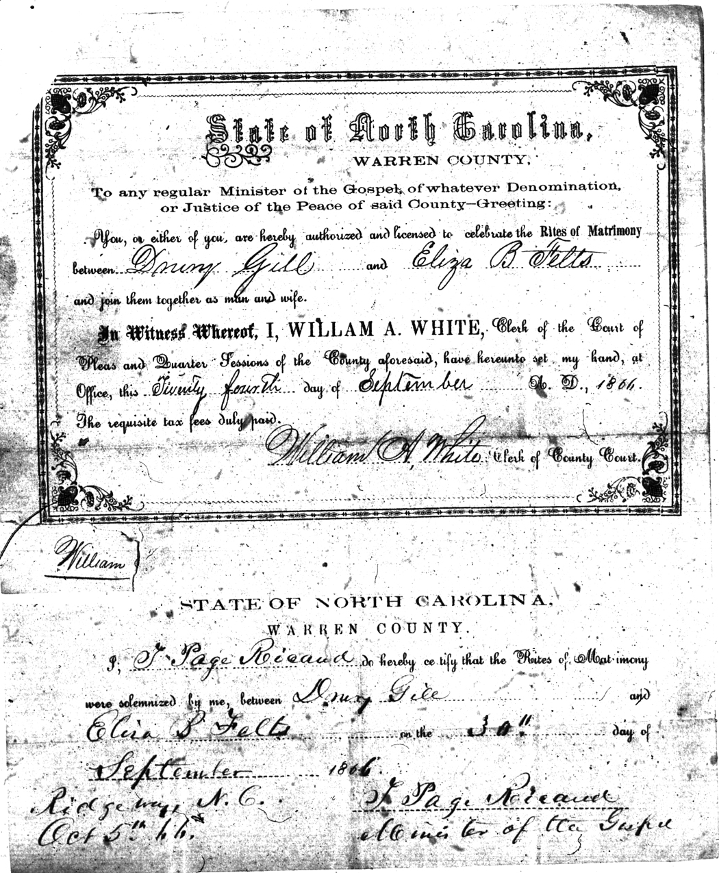 Gill Drury Felts Eliza B 24 Sep 1866 24 Sep 1866 J. Page White