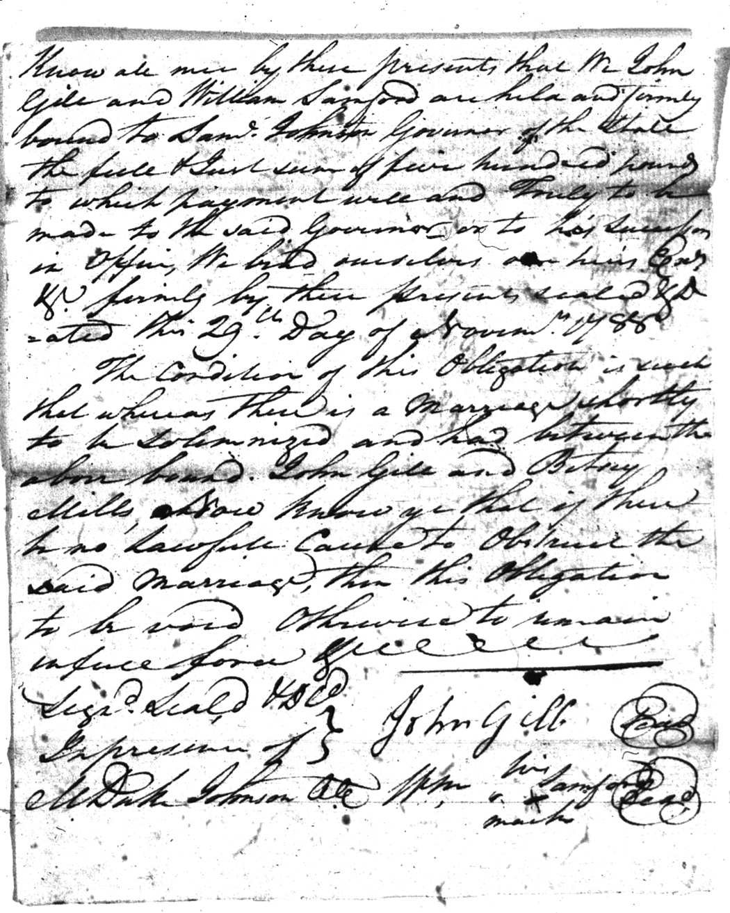 Gill John Mills Betsey 29 Nov 1788   William Sanford White