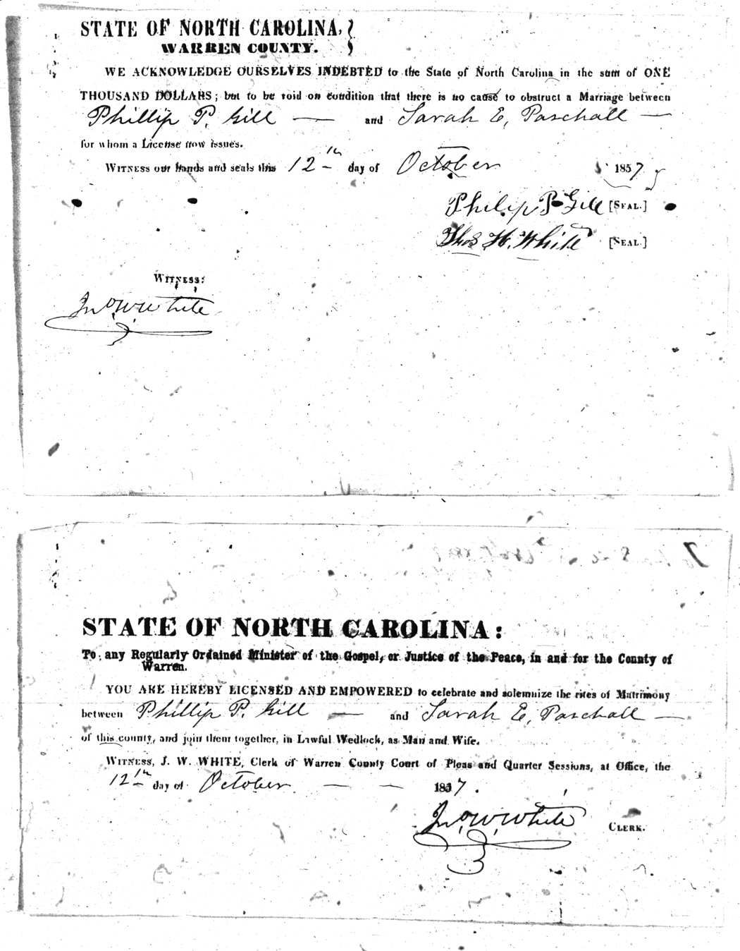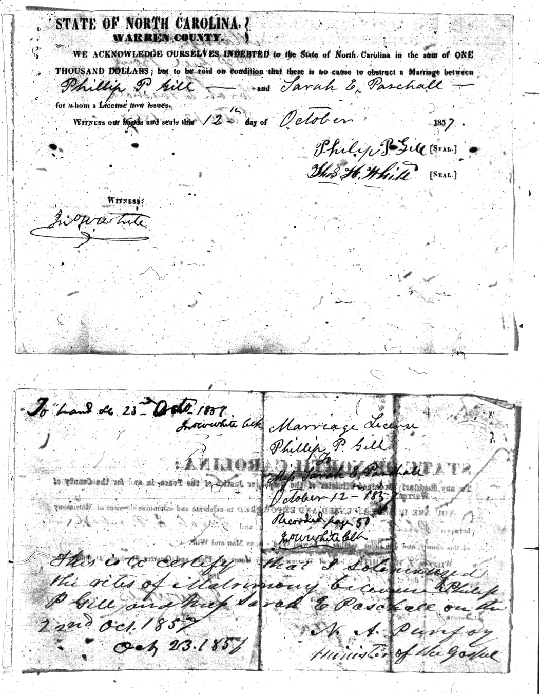 Gill Phillip P Paschall Sarah E 13 Oct 1857 13 Oct 1857 Thomas H. White White
