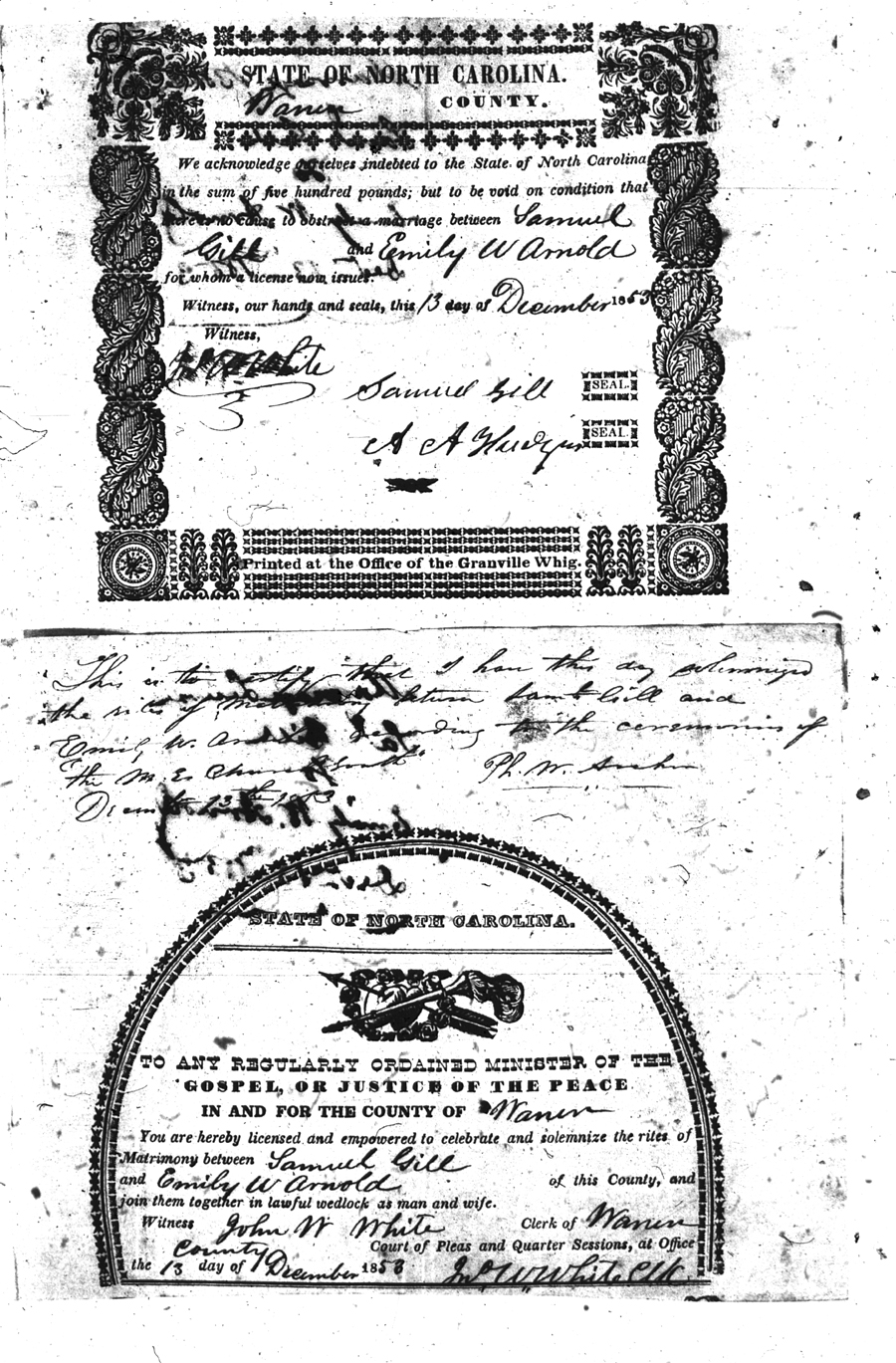 Gill Samuel Arnold Emily W 13 Dec 1853   A. A. Haudgens White