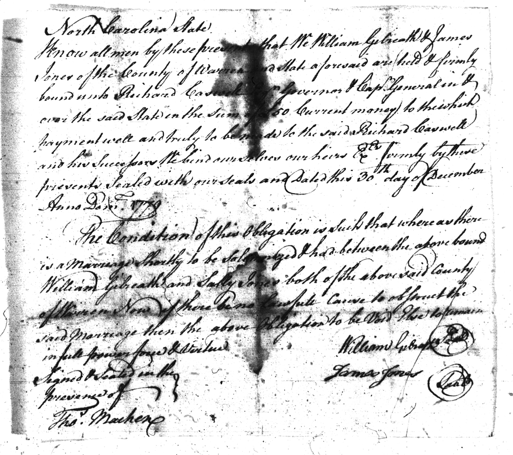 Gilrath William Jones Sally 03 Dec 1779   James Jones White