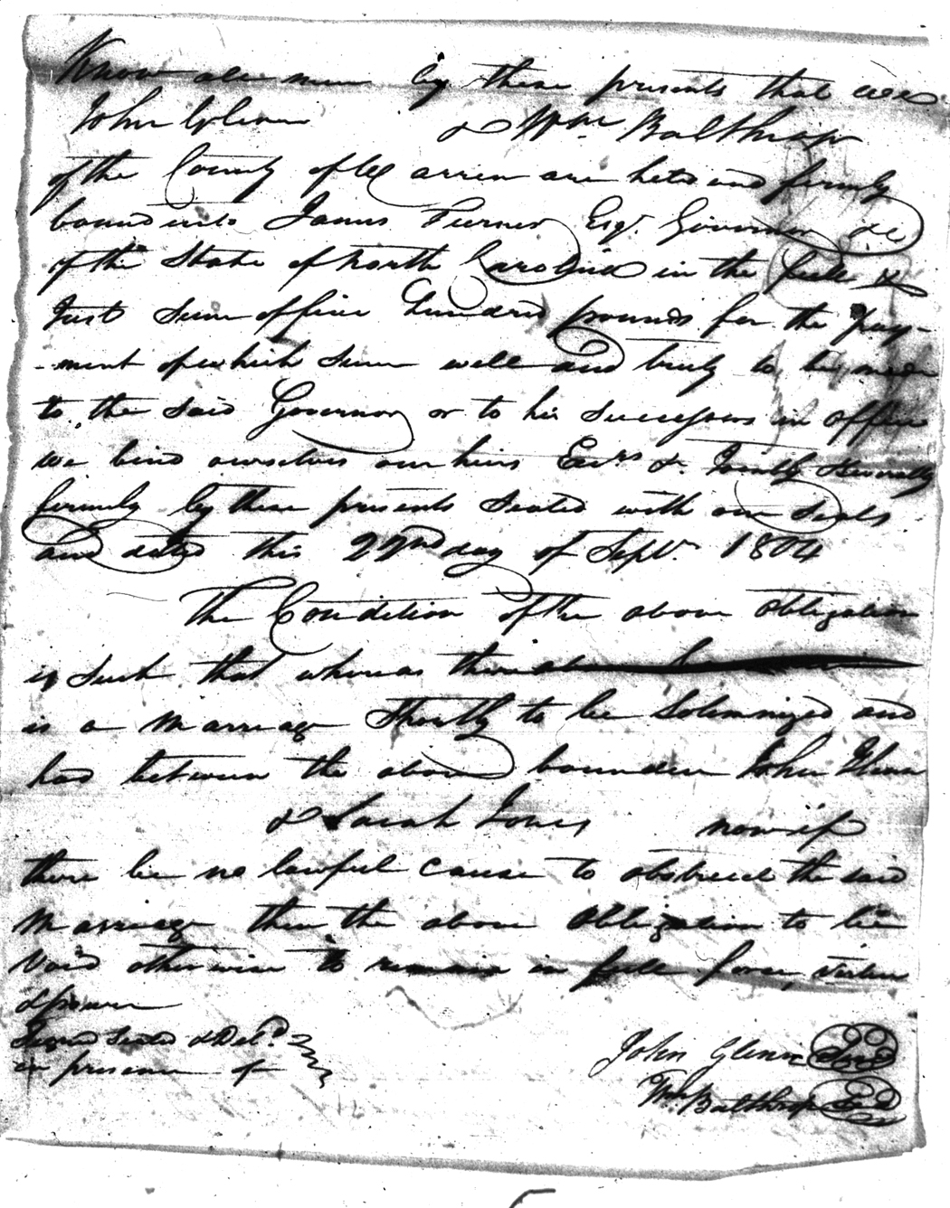 Glover Richard Pope Nancy 09 Nov 1805 Re-scan Abraham Clanton White