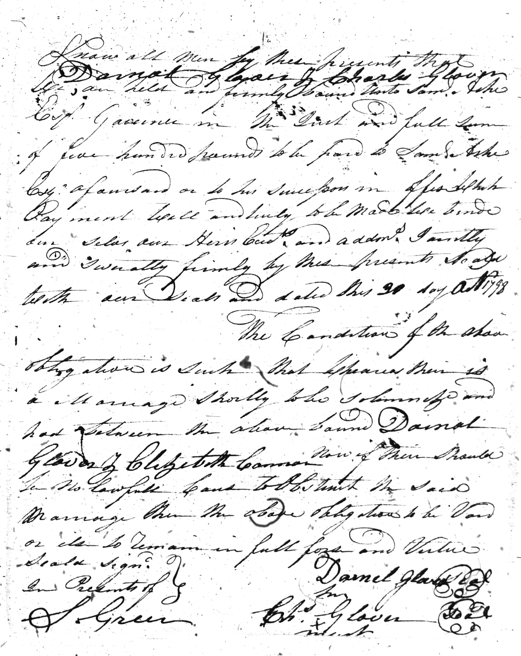 Glover Darnel Cannon Elizebeth 30 Oct 1798   Charles Golver White