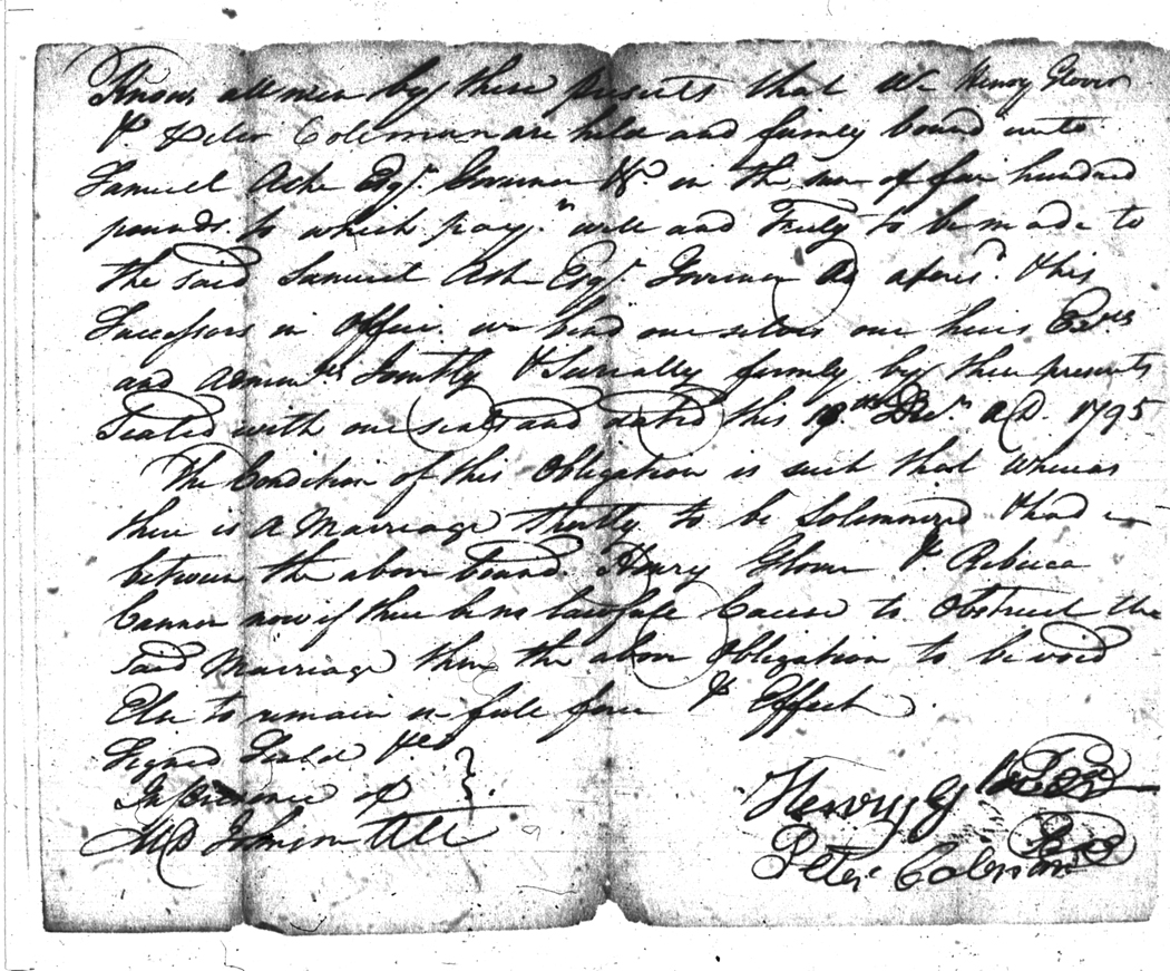 Glover Henry Cannon Rebecca 19 Dec 1795   Peter Coleman White