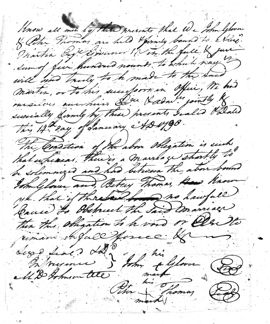 Glover John Thomas Betsey 14 Jan 1790   Peter Thomas White