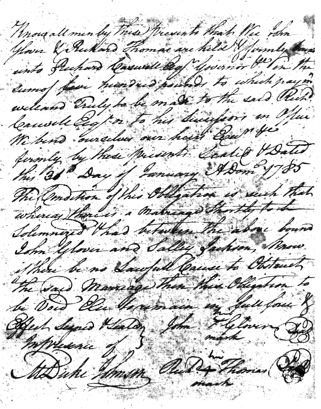 Glover John Jackson Salley 31 Jan 1785   Richard Thomas White