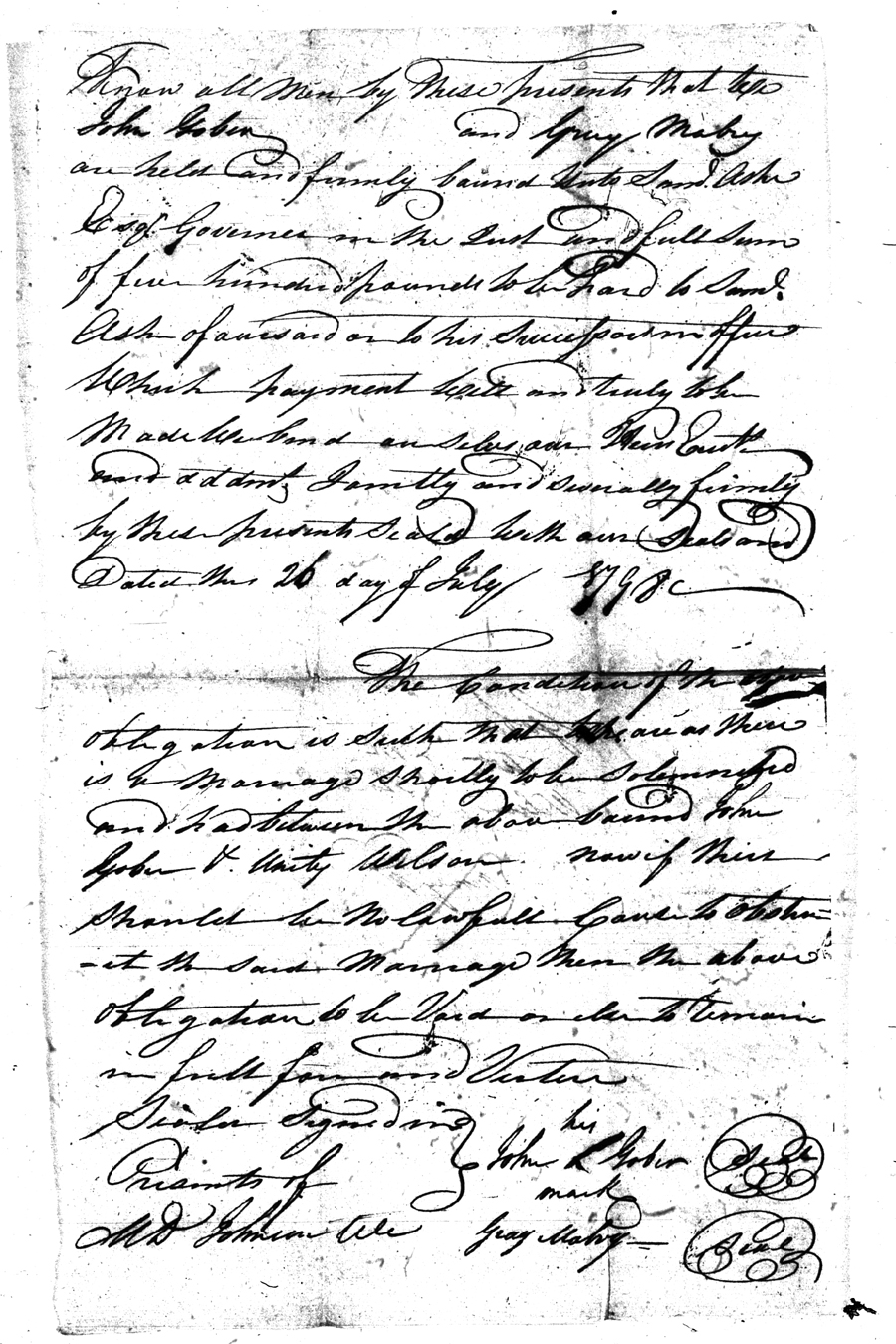Gober John Wilson Unity 26 Jul 1798   Gray Mabry White