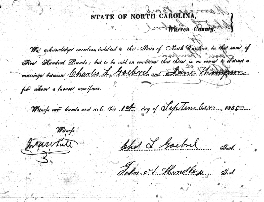 Goebrel Charles L Thompson Jane 01 Sep 1855   John A. Flanders White