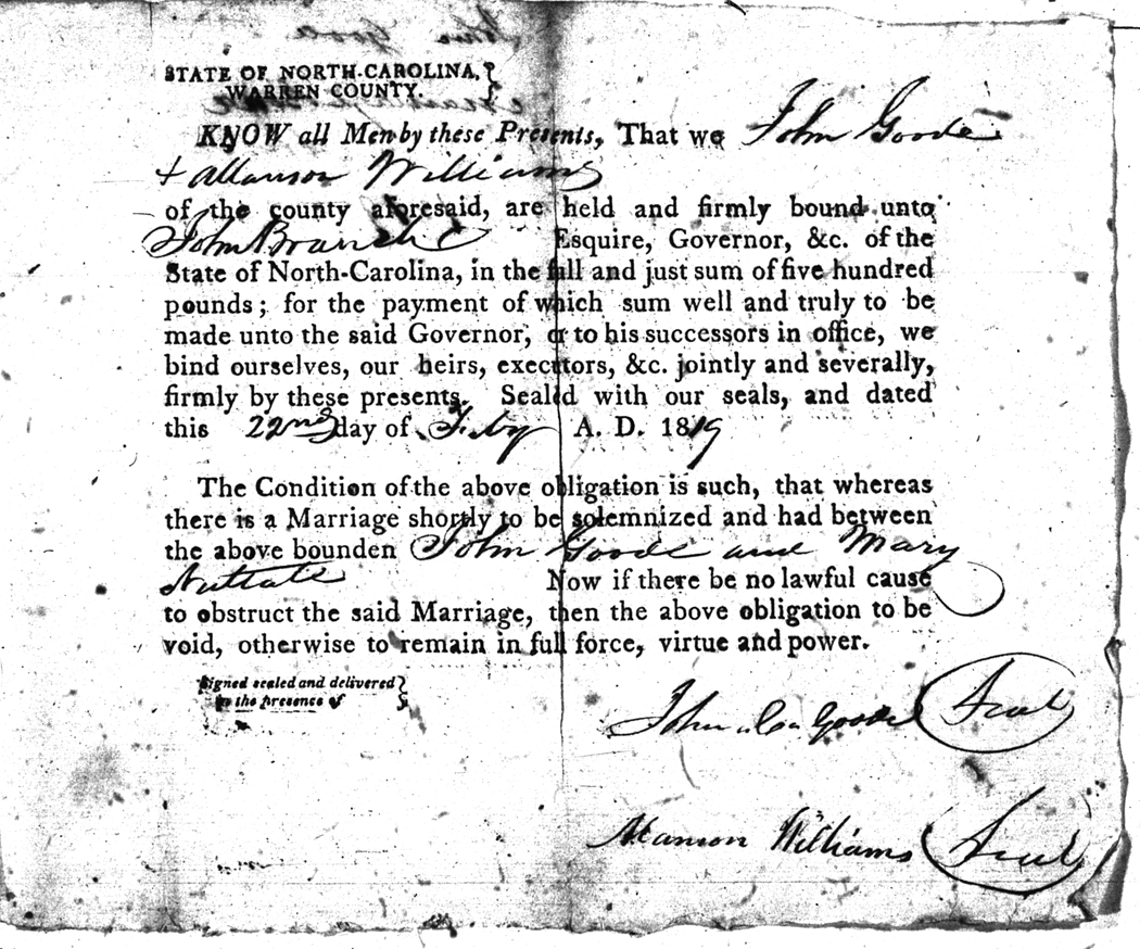 Goode John C. Nuttall Mary 22 Feb 1819   Allenson Williams White