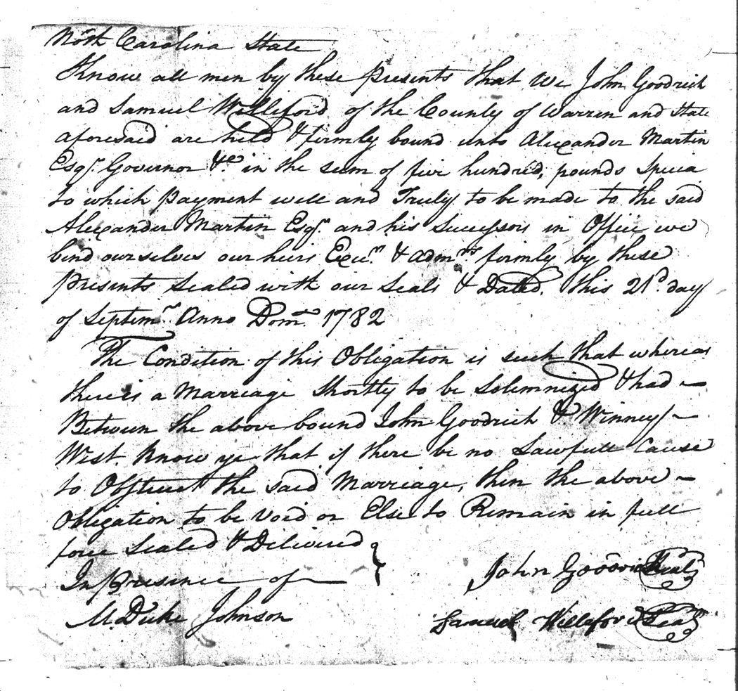 Goodrich John West Winney 21 Sep 1782   Samuel Willeford White