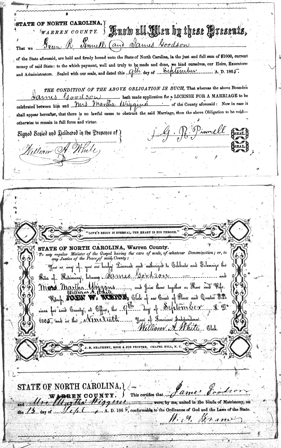 Goodson James Wiggins Martha 09 Sep 1865   Green R. Pinnell White