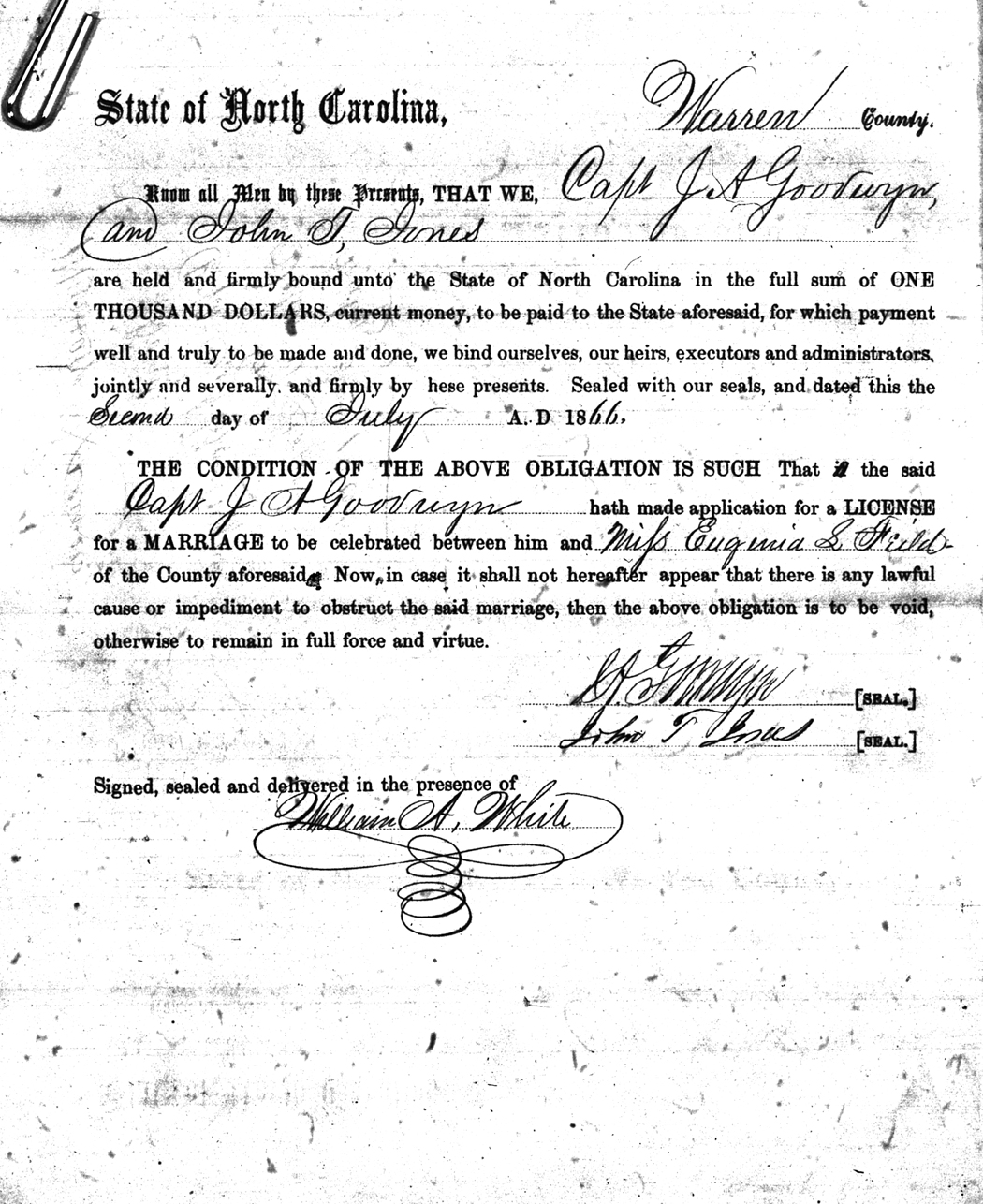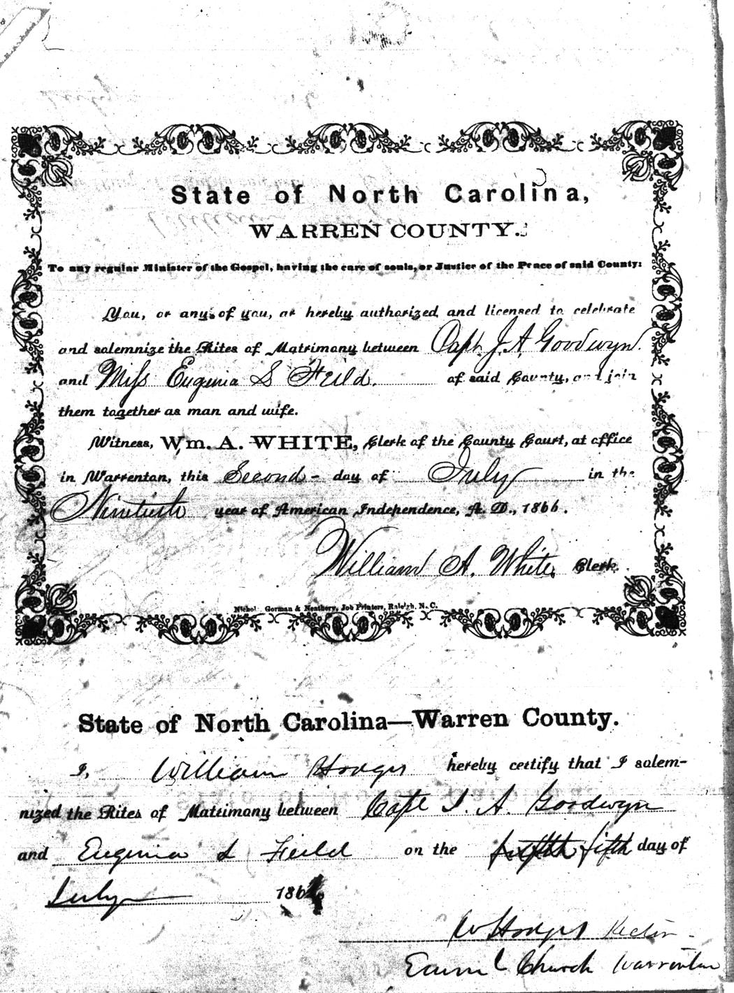 Goodwyn J A Capt Field Eugenia L 02 Jul 1866 02 Jul 1866 W. Hodges White