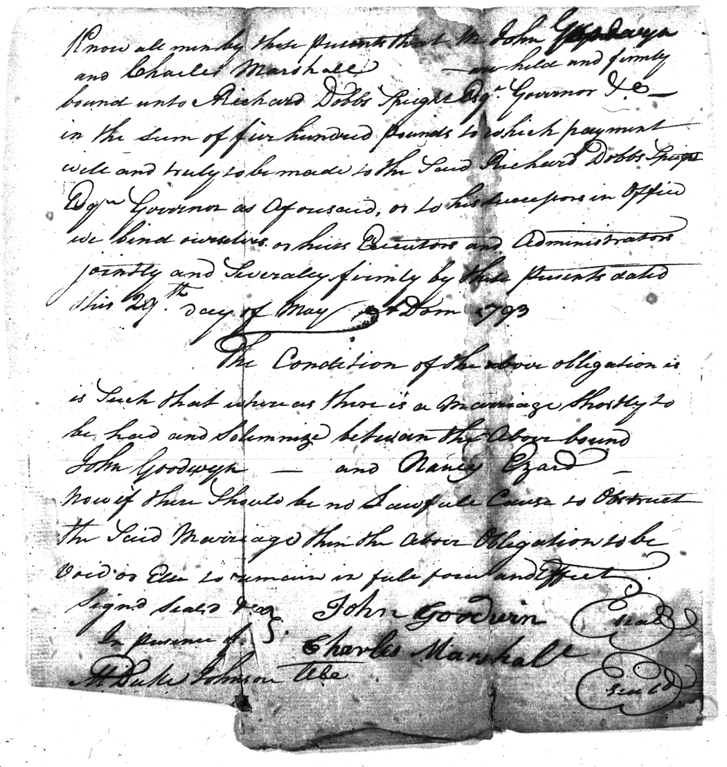 Goodwin John Ezard Nancy 29 May 1793   Charles Marshall White