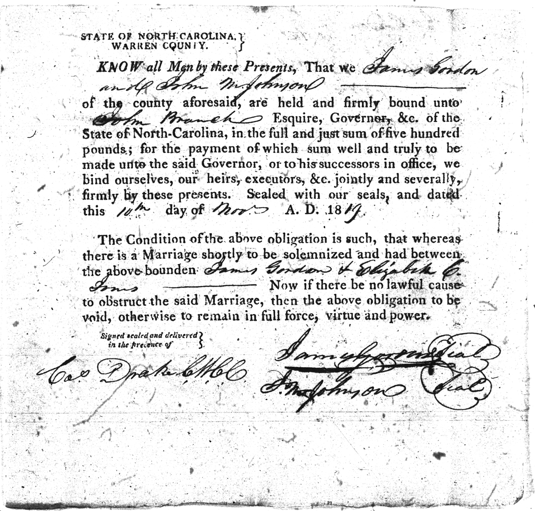 Gordon James Jones Elizabeth C. 10 Nov 1819   John M. Johnson White
