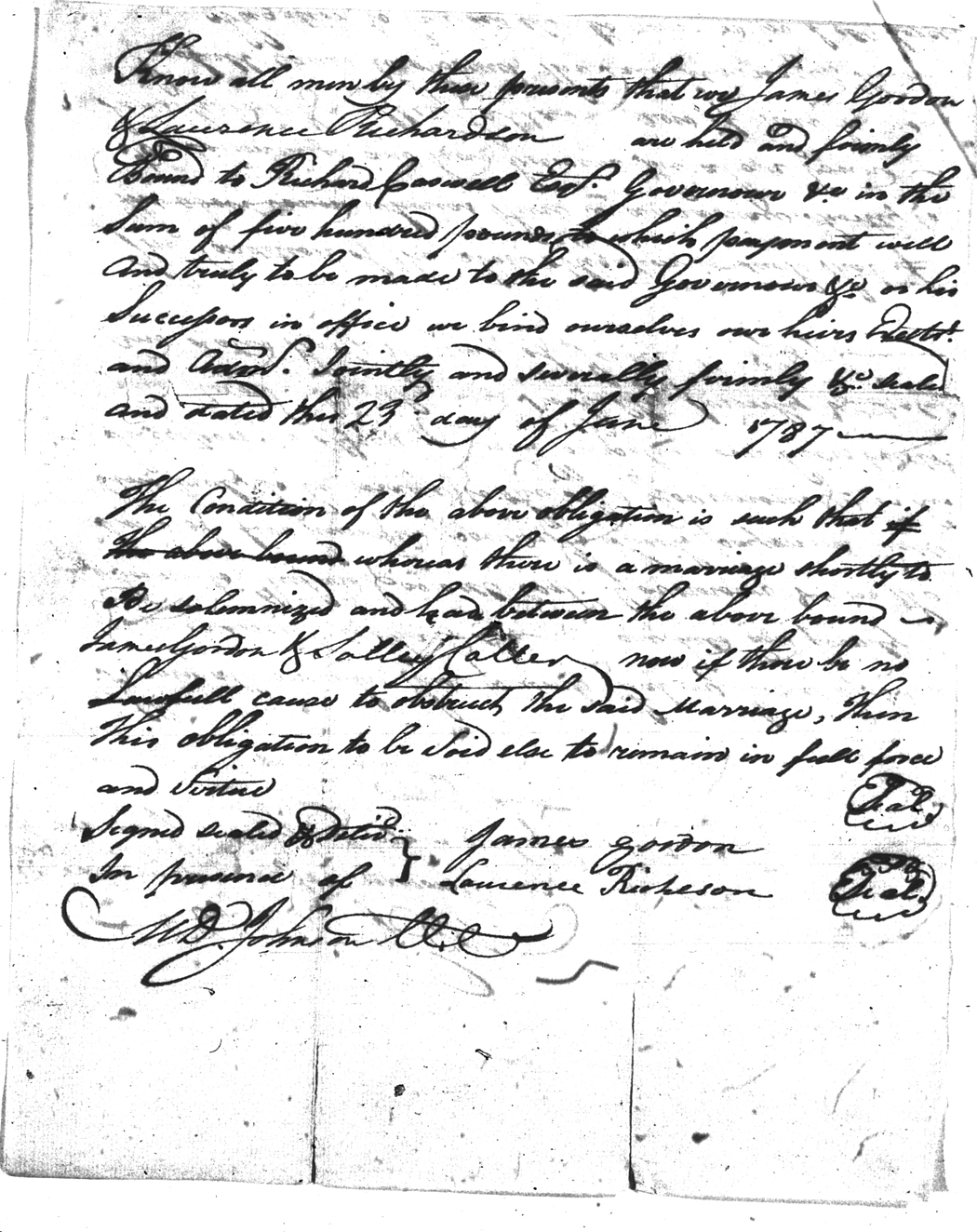 Gordon James Caller Salley 23 Jun 1787   Laurance Richardson White