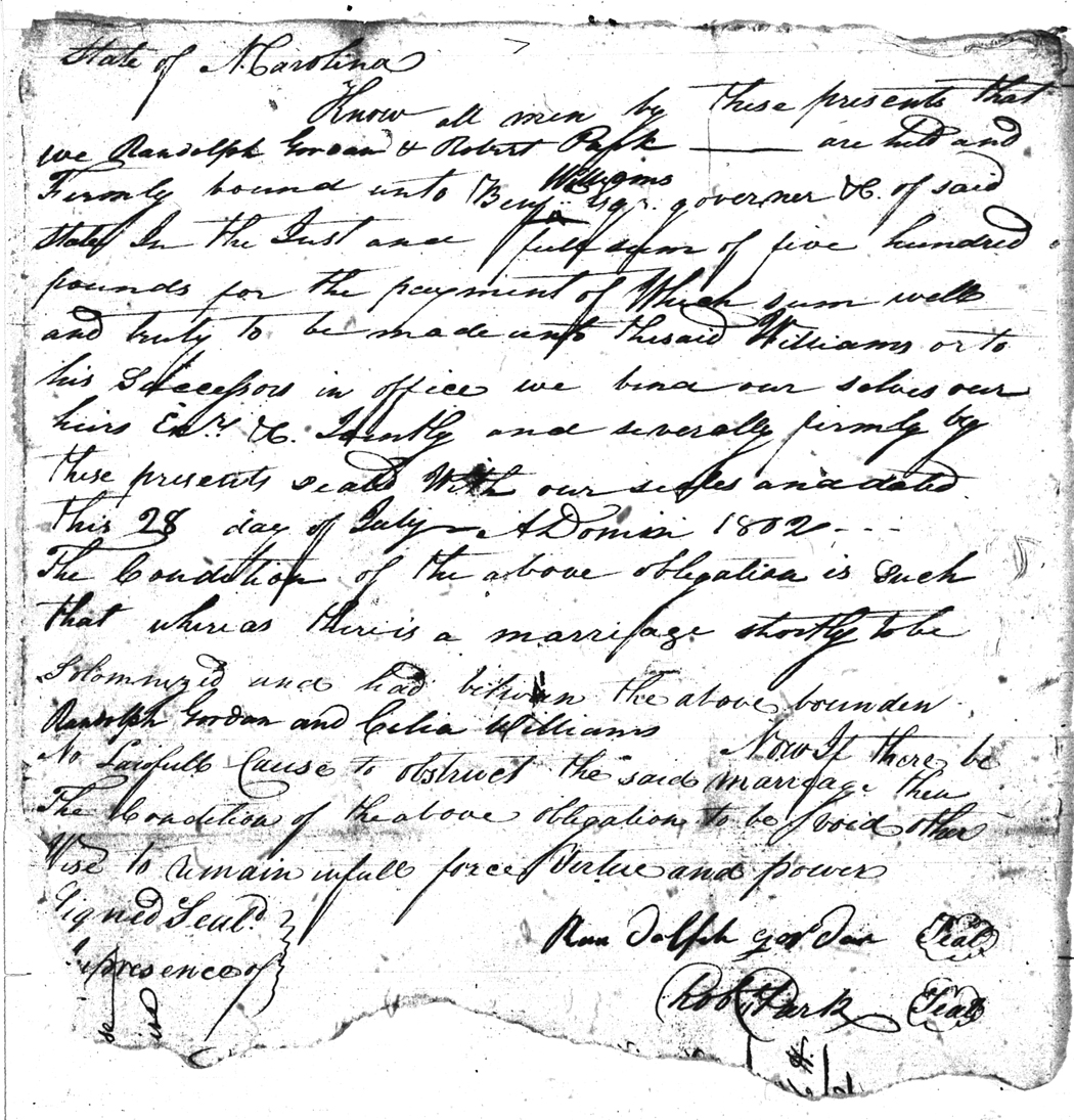 Gordan Randolph Williams Celia 28 Jul 1802   Robert Park White