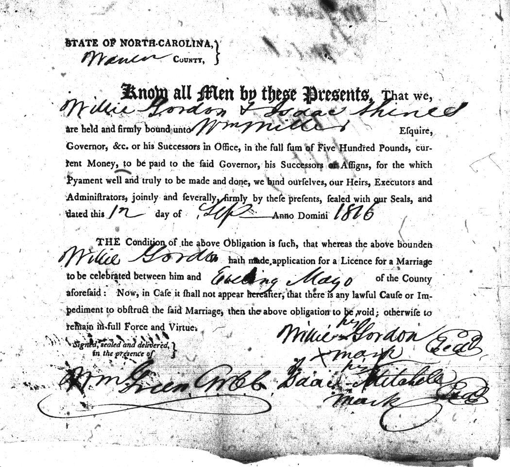 Gordon Willie Mayo Eveling 12 Sep 1816   Isaac Mitchell Colored