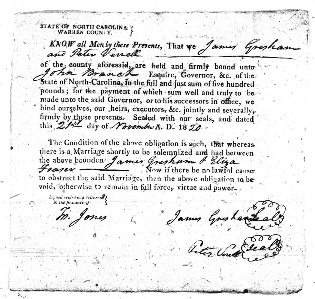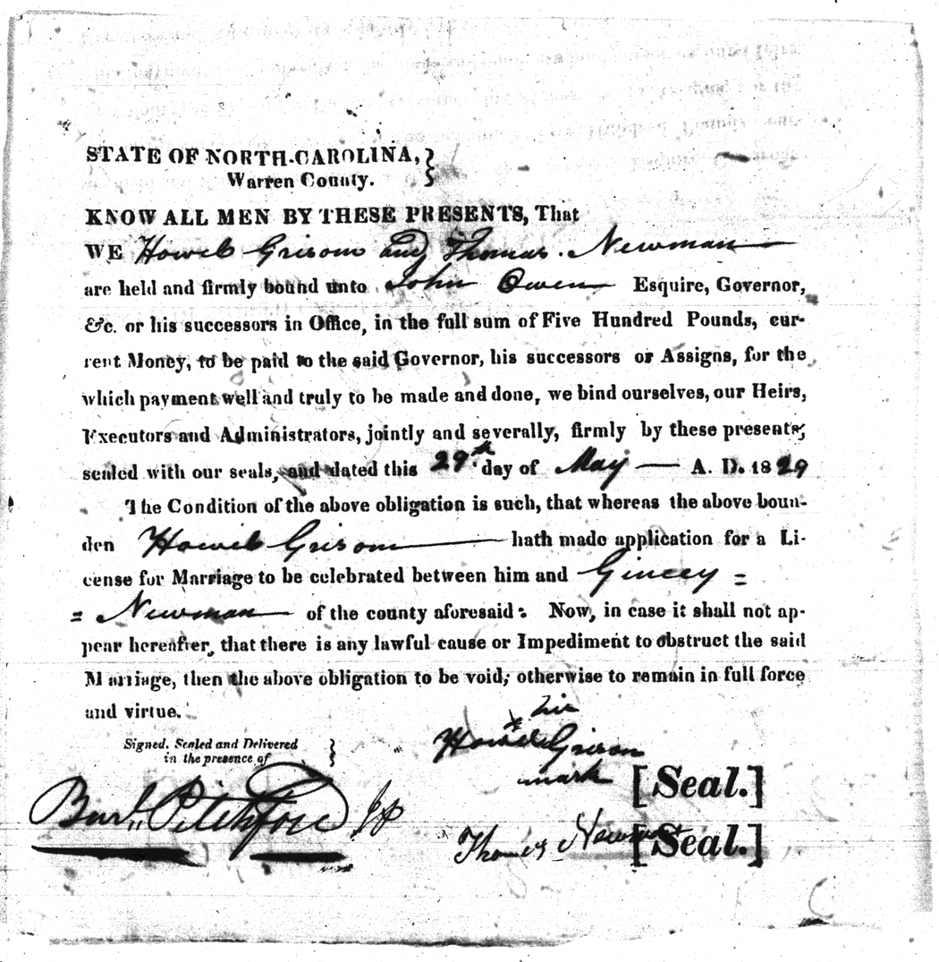 Grisom Howel Newman Gincey 29 May 1829   Thomas Newman White