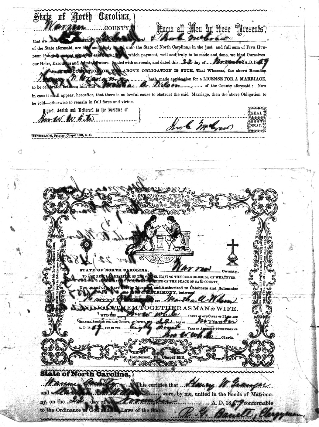 Granger Henry W Wilson Martha A 22 Nov 1859   R. McGraw White
