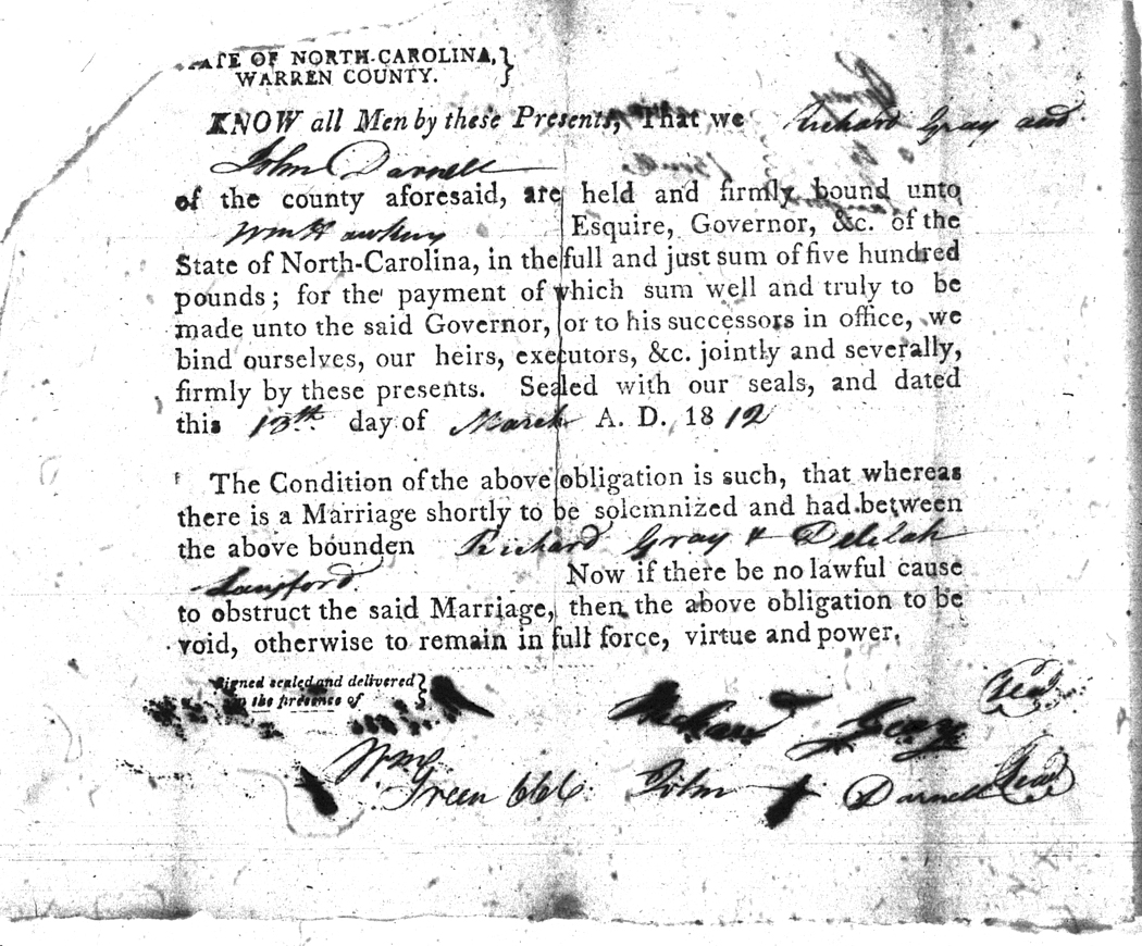 Gray Richard Langford Delilah 13 Mar 1812   John Darnel White