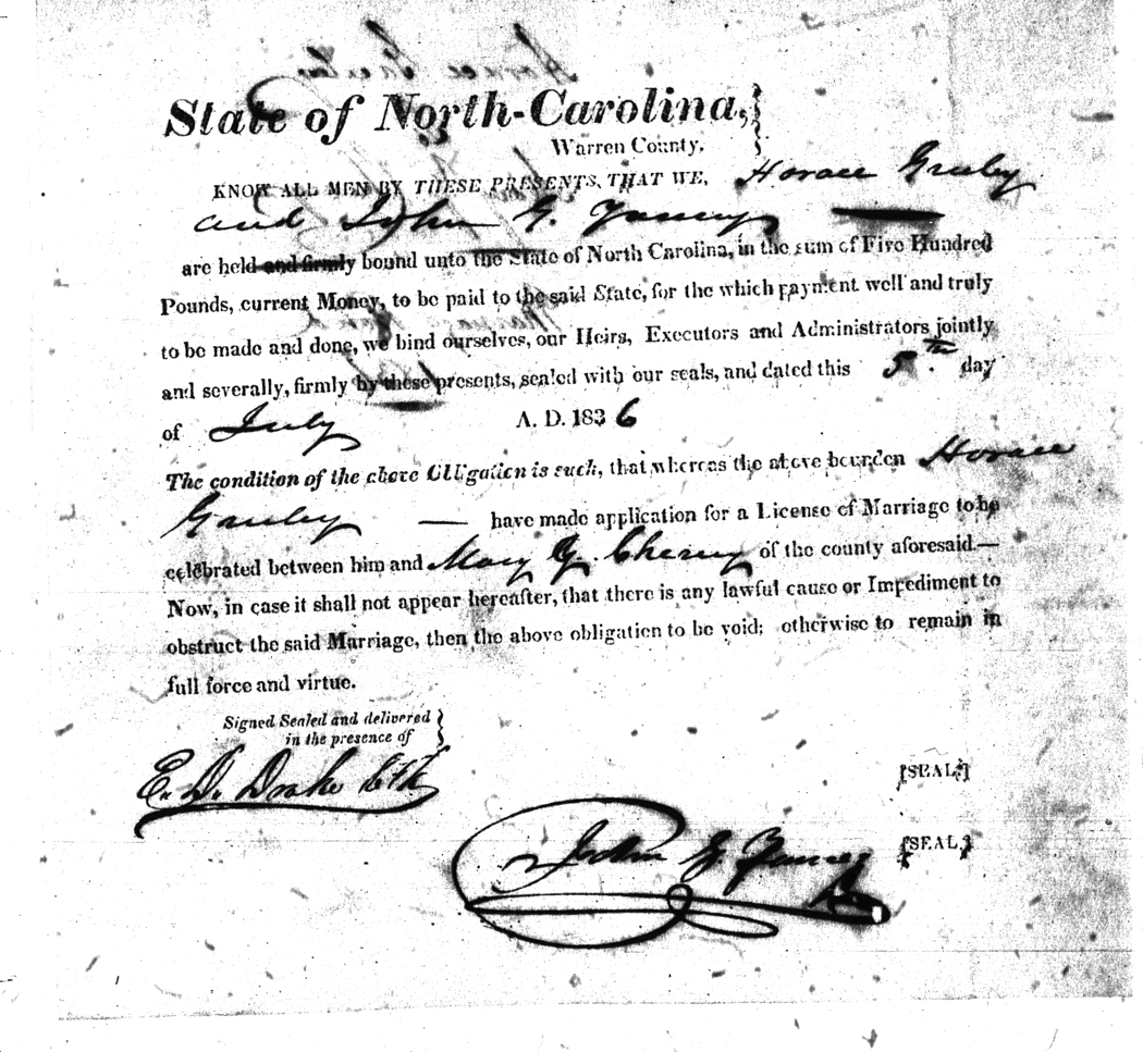 Greeley Horace Cheney Mary Y 05 Jul 1836   John G. Yancey White