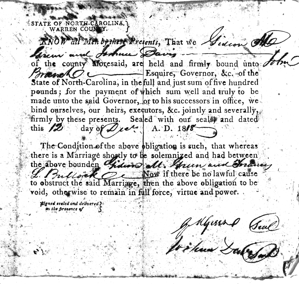 Green Gideon M. Bullock Francis L. 12 Dec 1818   Joshua Davis White