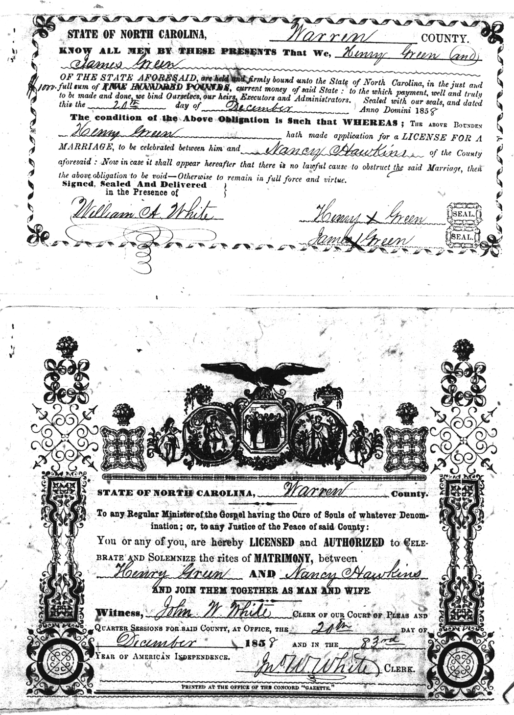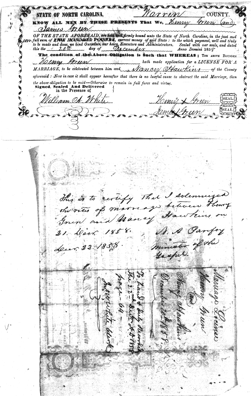 Green Henry Hawkins Nancy 20 Dec 1858 20 Dec 1858 James Green Colored